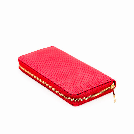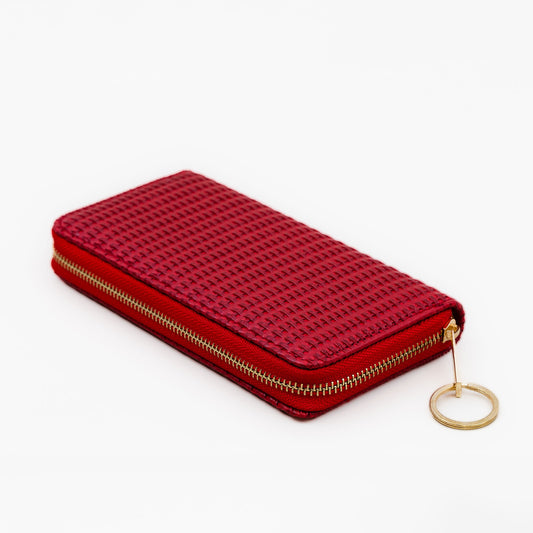 Portofel damă cu fermoar, textură împletită în relief, 14 compartimente - Roșu