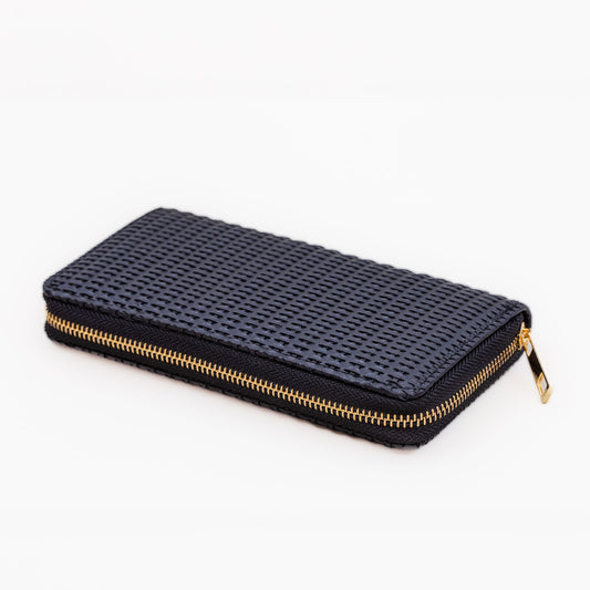 Portofel damă cu fermoar, textură împletită, 14 compartimente - Negru