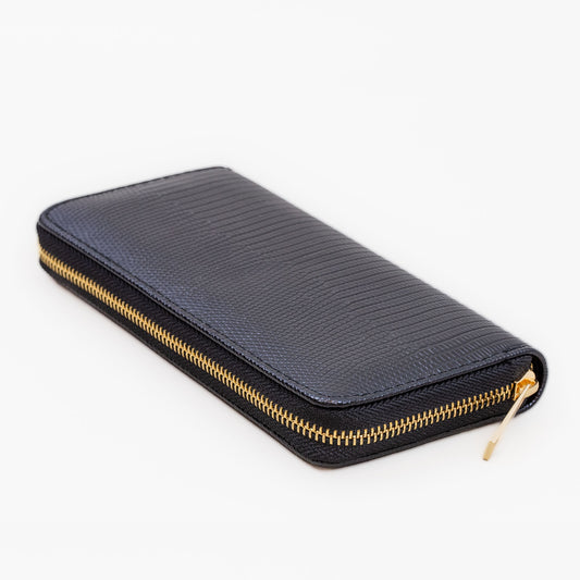 Portofel damă cu fermoar, textură împletită în relief, 14 compartimente - Negru