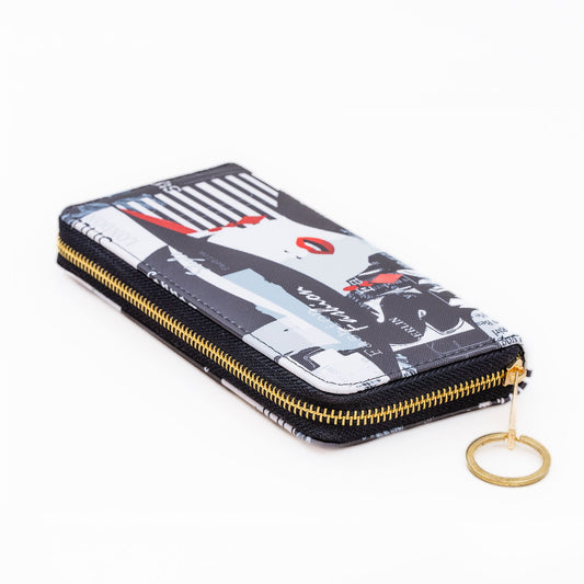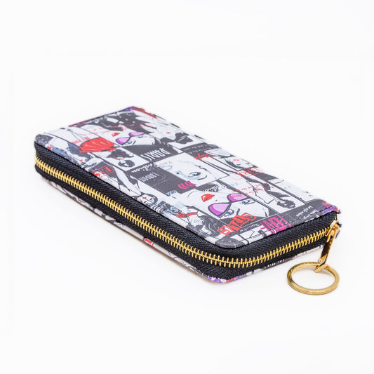 Portofel damă cu feromoar, imprimeu colaj artistic, 14 compartimente - Style
