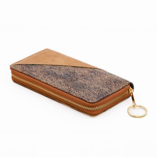 Portofel damă cu fermoar, textură animal print, 14 compartimente - Maro