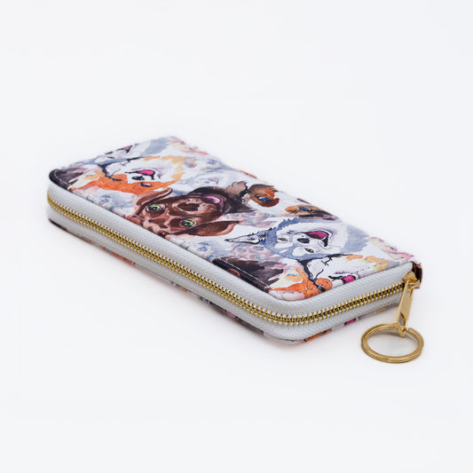Portofel fete cu feromoar, imprimeu câini, 14 compartimente - Alb Dog Lover