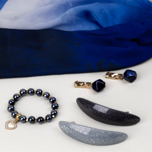 Set cadou cercei, brățară, eșarfă, agrafe franțuzești - Albastrul Dimineții