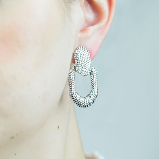 Cercei 2088 cu formă de cataramă texturată - Argintiu