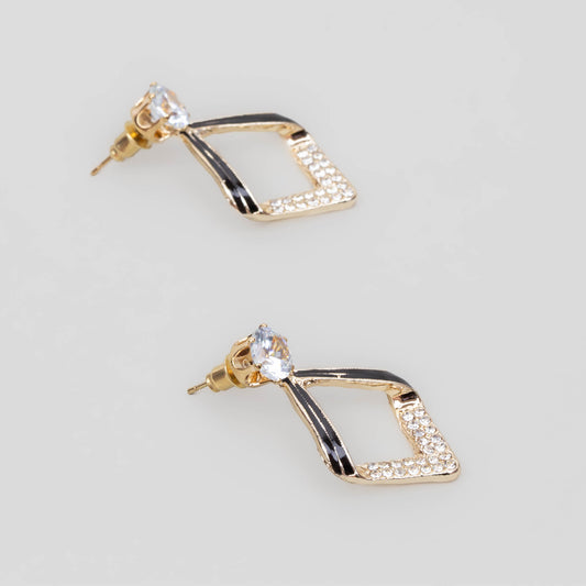 Cercei în formă de romb cu pietre și accent negru - Auriu