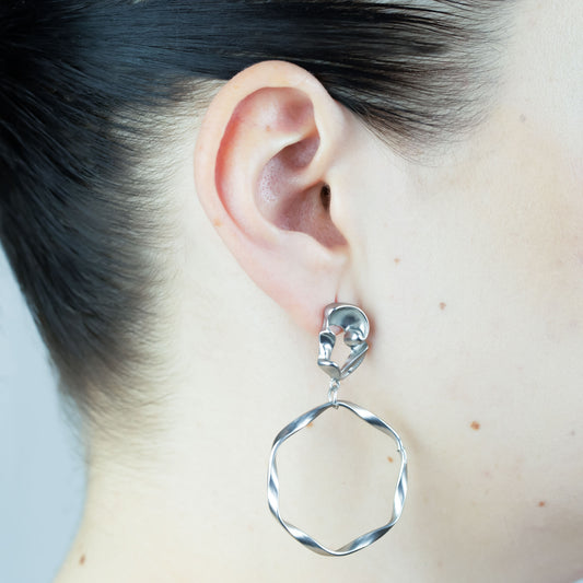 Cercei kontorsia cu cercuri abstracte - Argintiu