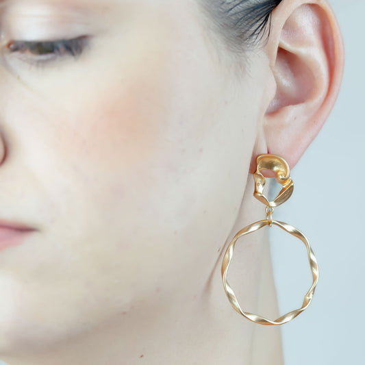 Cercei kontorsia cu cercuri abstracte - Auriu