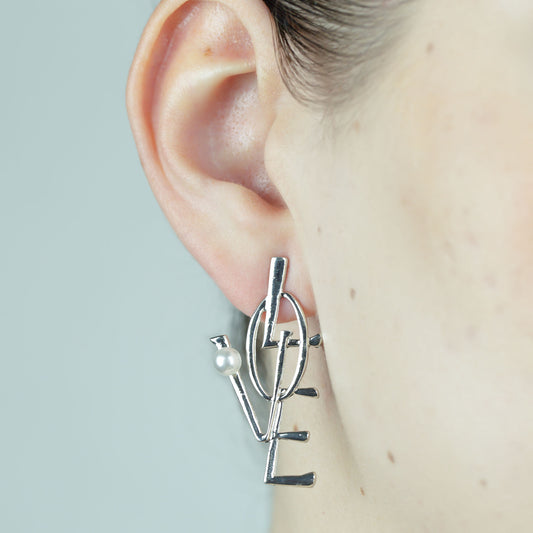 Cercei LOVE cu perlă - Argintiu