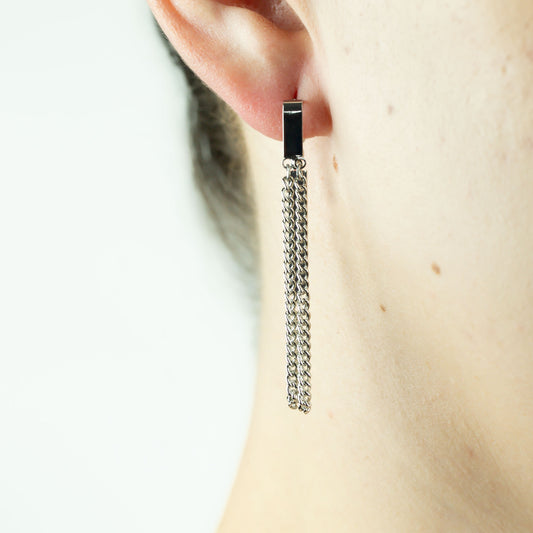 Cercei lungi în stil minimal cu lanț dublu - Argintiu