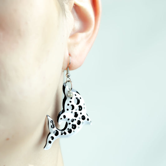 Cercei metalici în formă de delfin - Alb, Negru