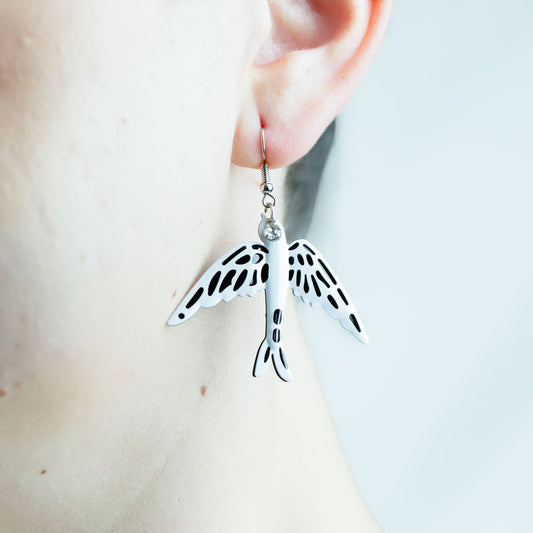 Cercei metalici în formă de rândunică - Alb, Negru