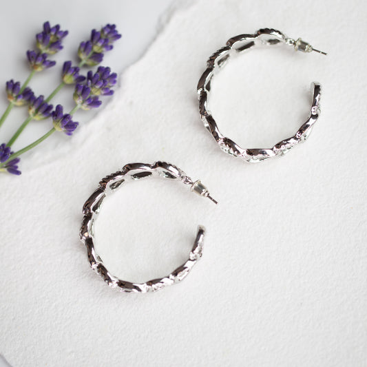Cercei rotunzi cu forme de zale texturate - Argintiu