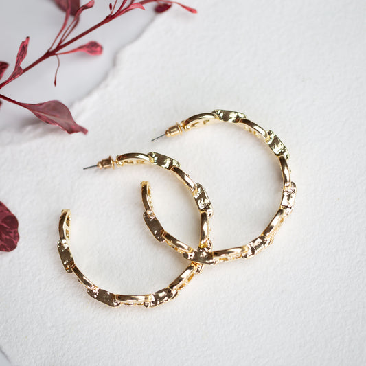 Cercei rotunzi cu forme de zale tip cataramă - Auriu