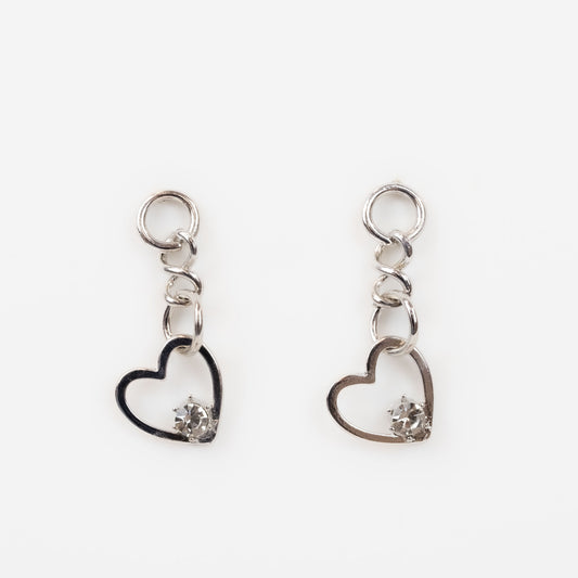 Cercei în formă de inimă cu verigă și ștrasuri - Argintiu