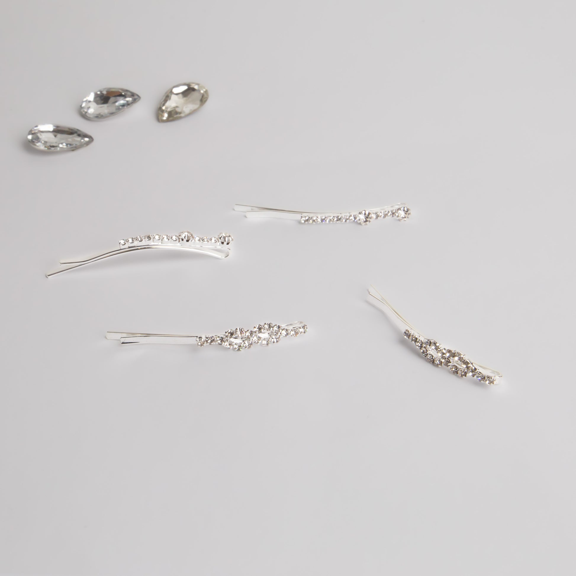 Agrafe de păr elegante cu ștrasuri fine starlight, set 4 - Argintiu