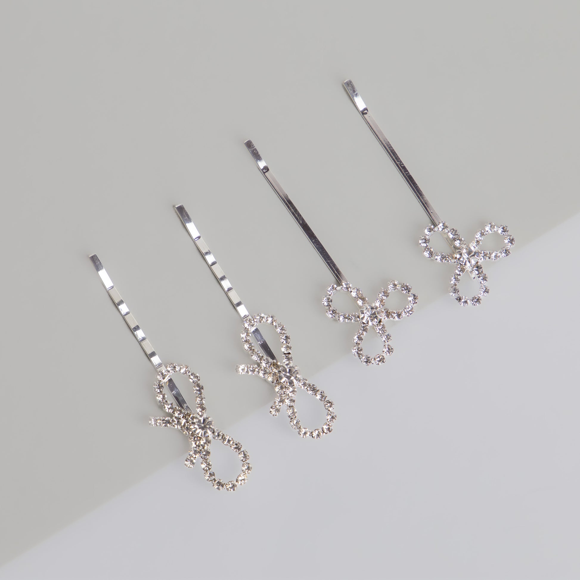 Agrafe de păr rafinate petal ribbon cu ștrasuri, set 4 - Argintiu