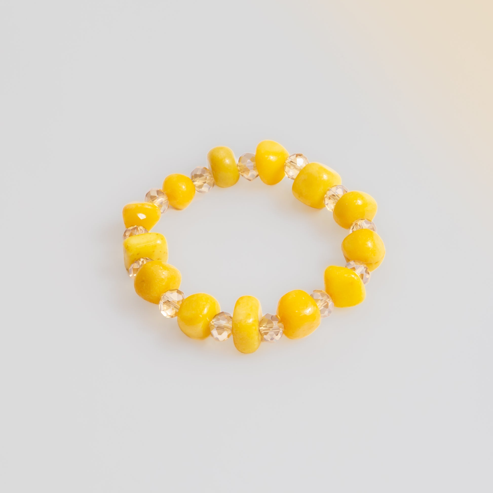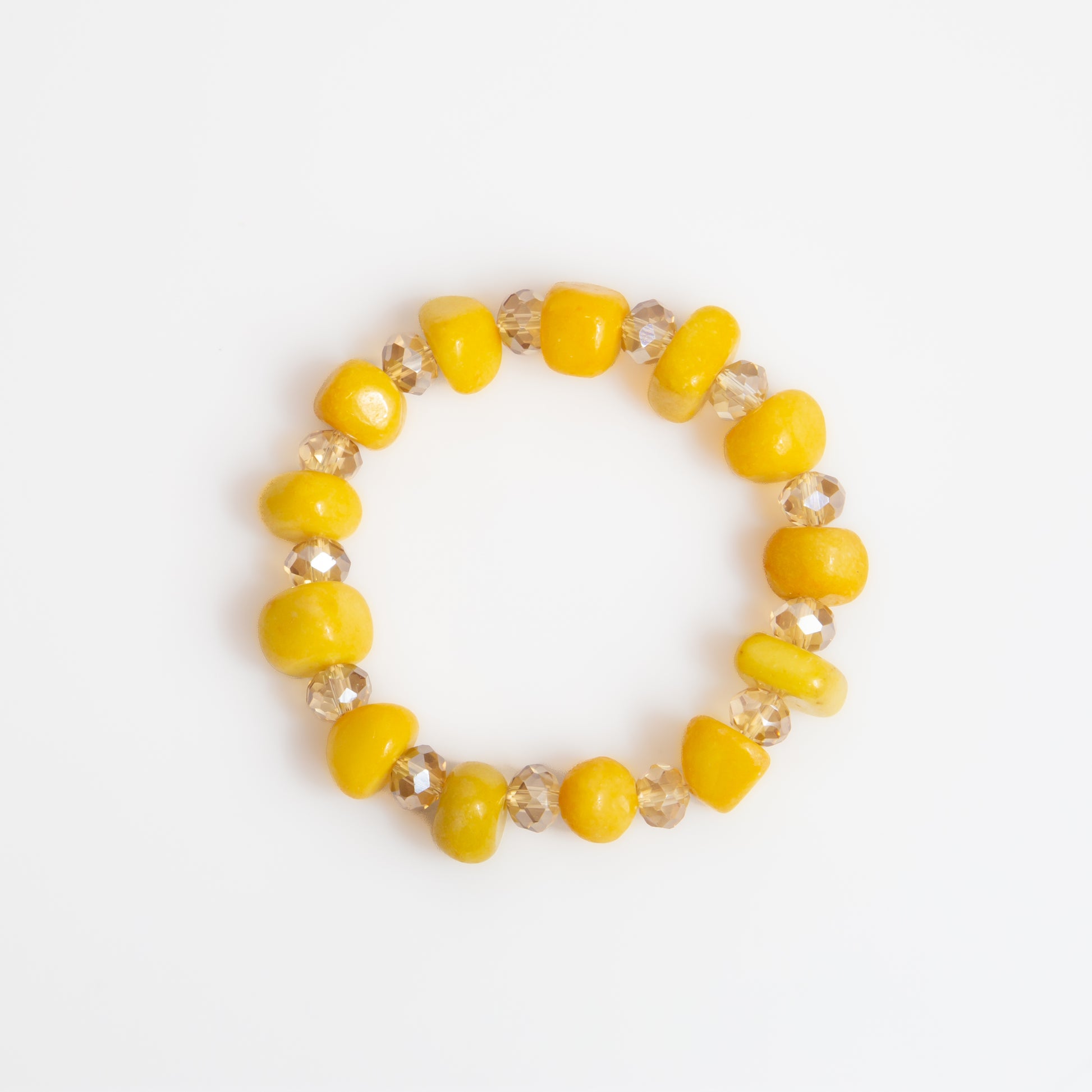 Brățară elastică cu mărgele marmorate și pietre GemFusion - Galben