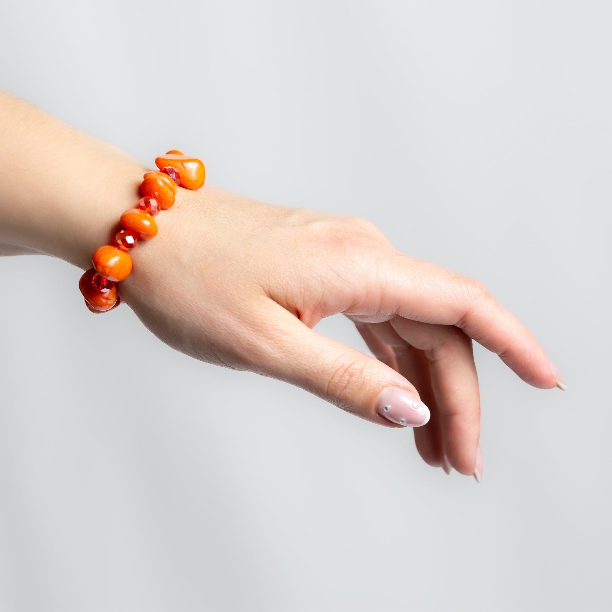 Brățară elastică cu mărgele marmorate și pietre GemFusion - Portocaliu