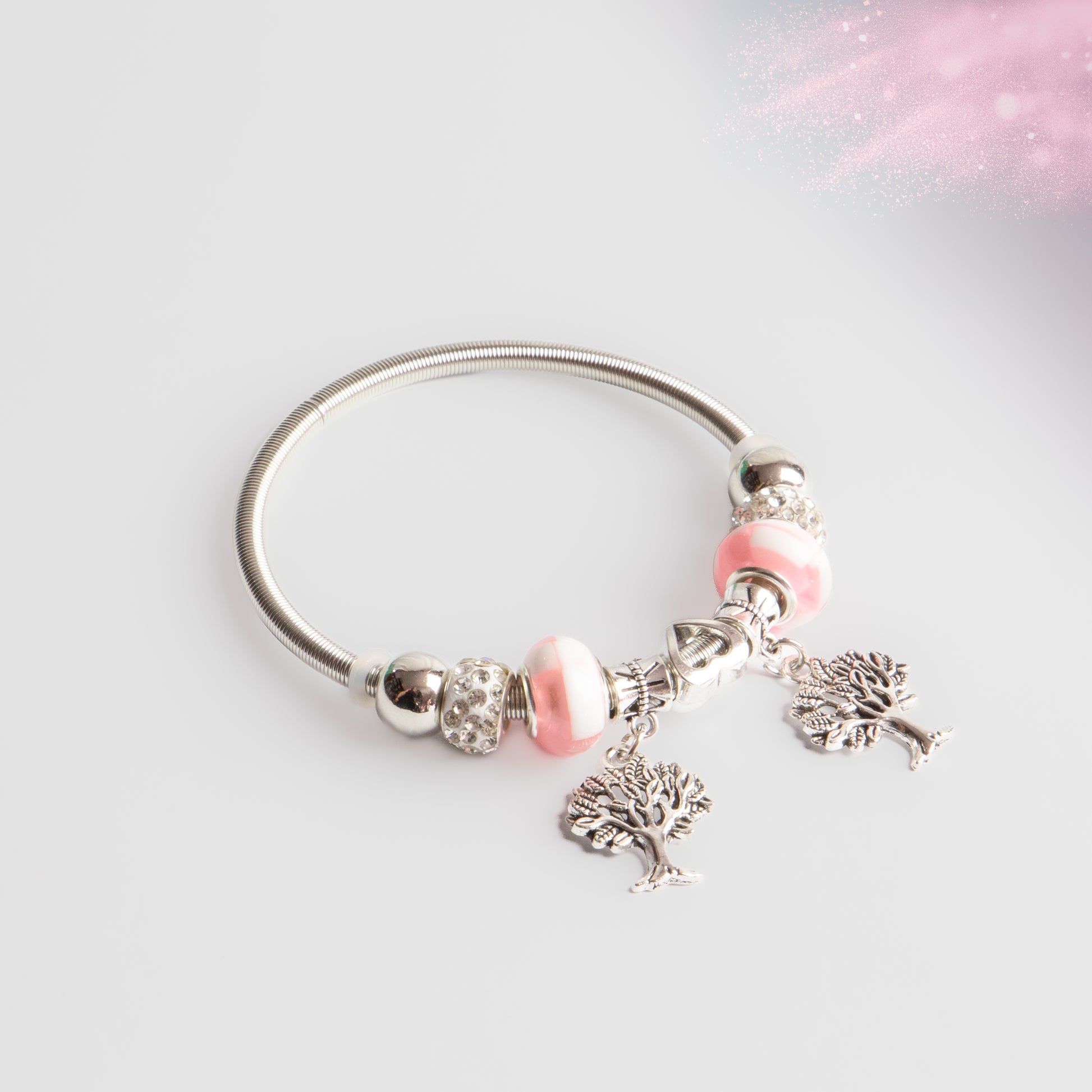Adaugă un plus de rafinament ținutelor tale cu o brățară chic, ușor de purtat și asortat. Concepută cu detalii elegante și charm-uri delicate, această brățară este potrivită pentru orice încheietură oferind un confort maxim.