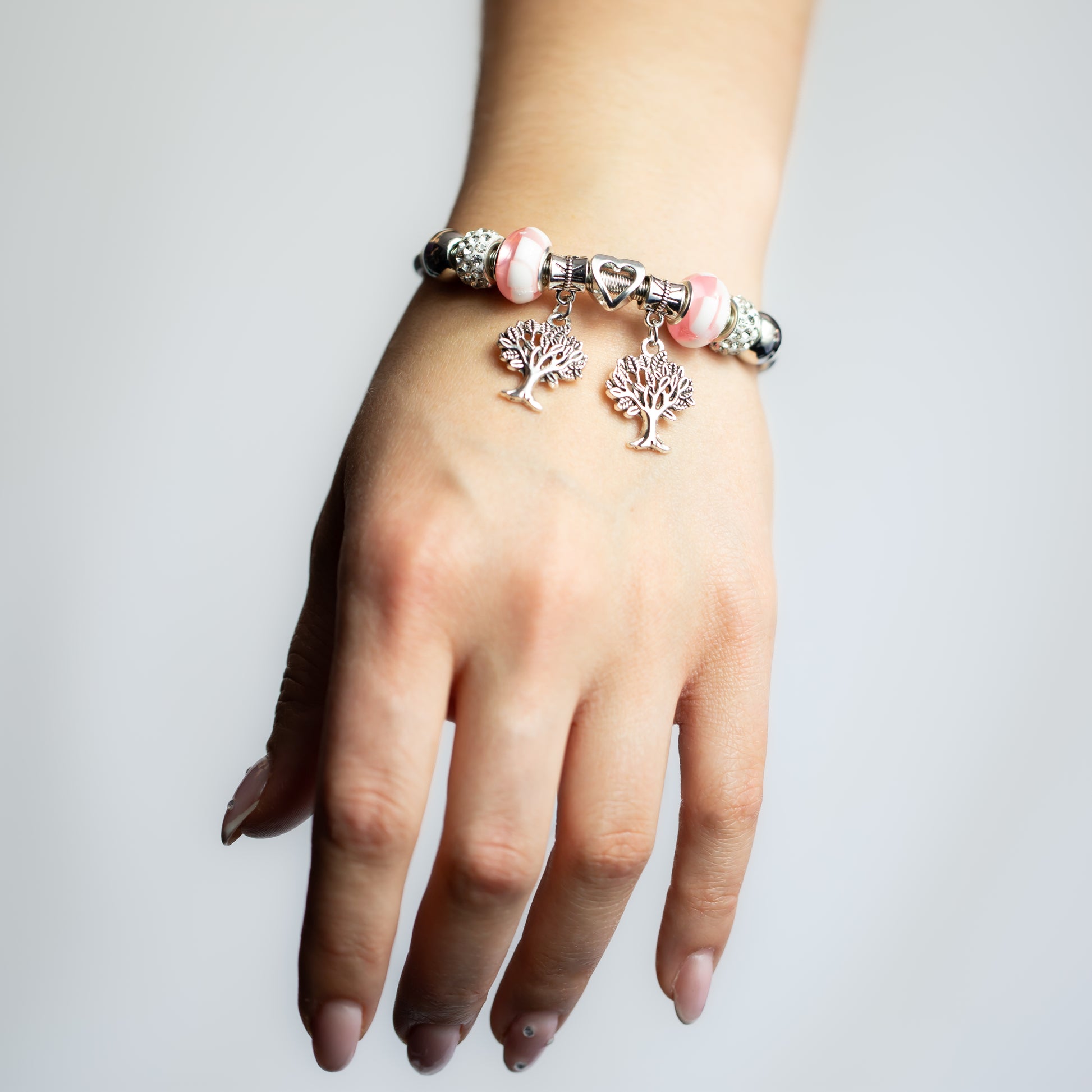 Brățară reglabilă arborele vietii cu charm-uri - Argintiu
