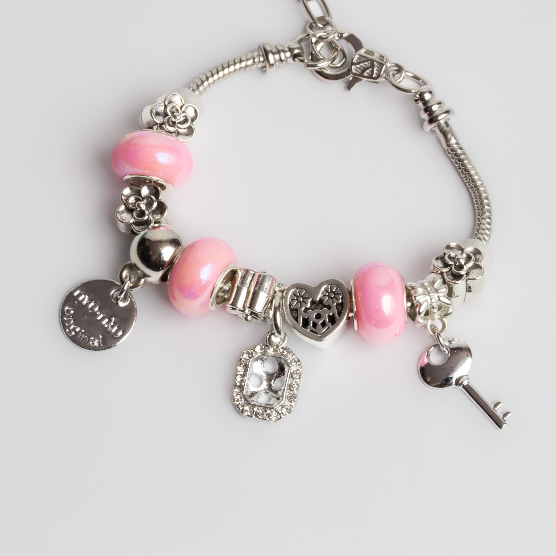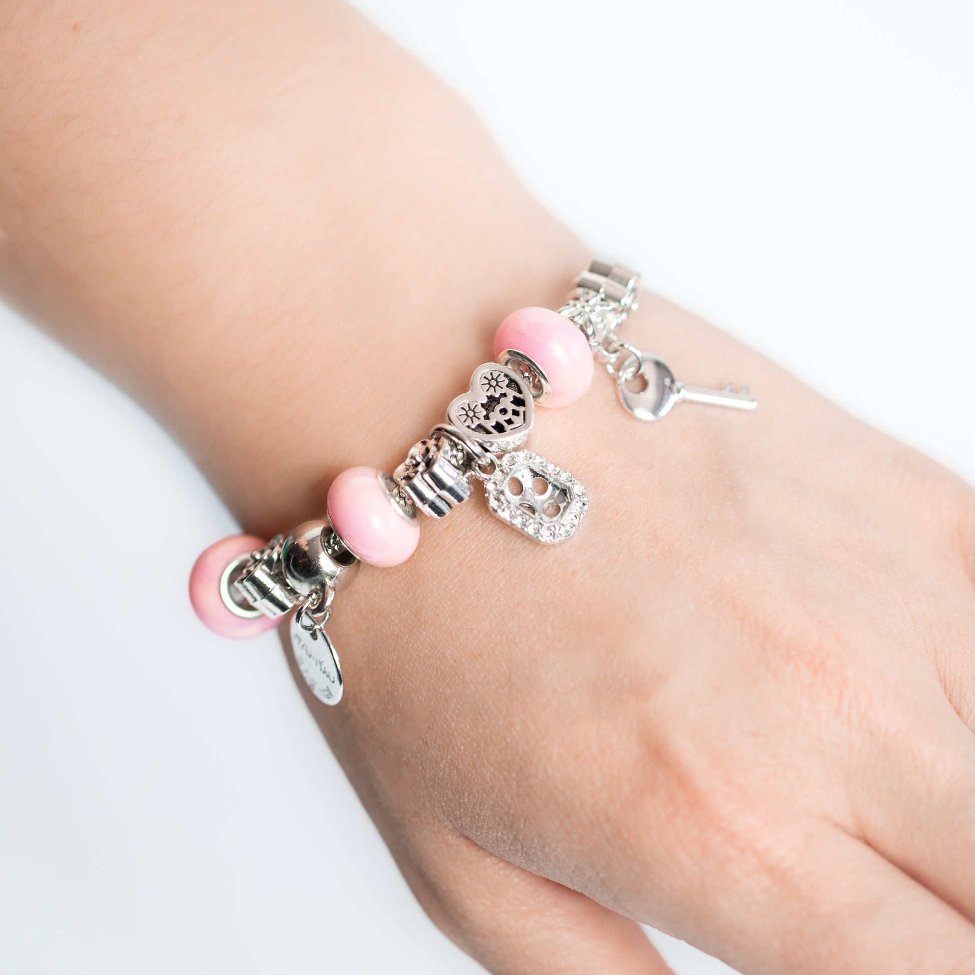 Brățară reglabilă key bloom cu charm-uri și pietre - Argintiu, Roz