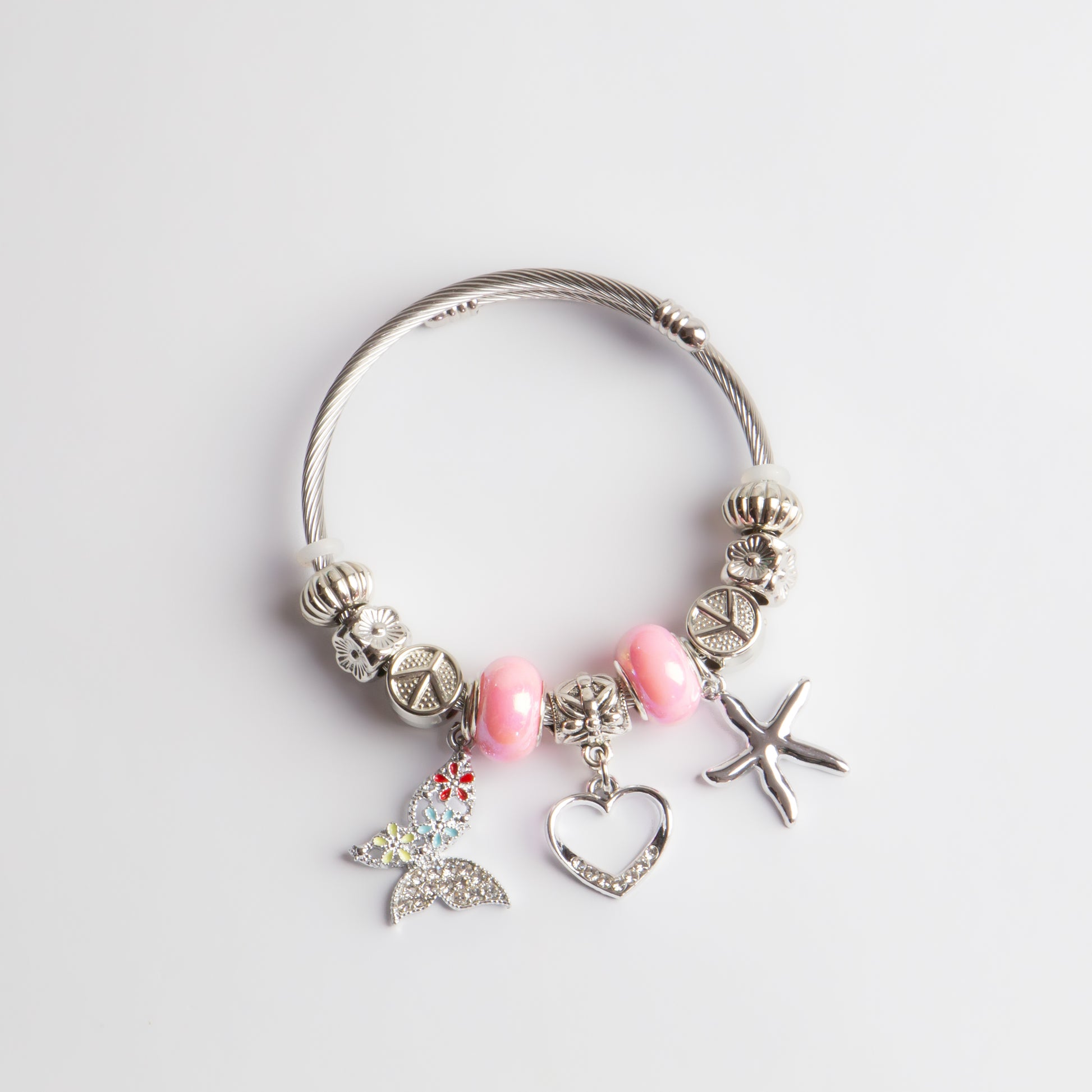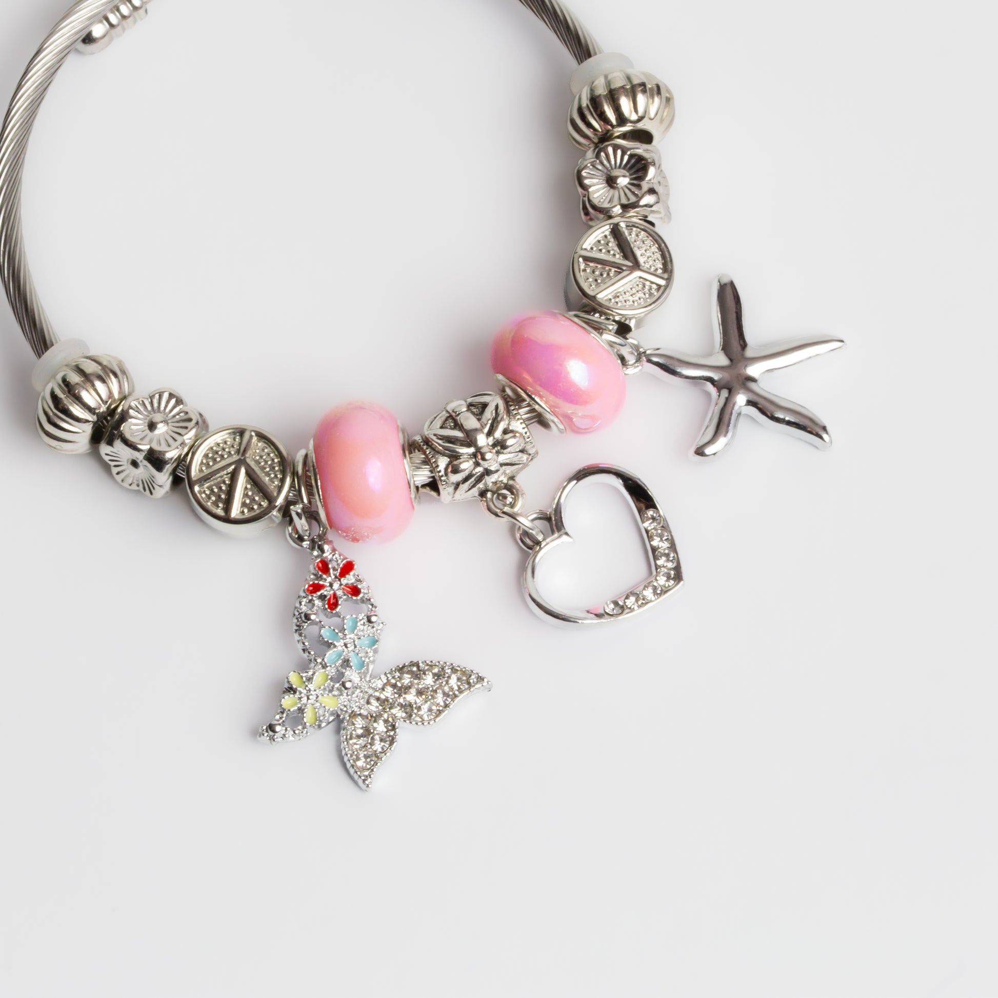 Brățară reglabilă love and peace cu charm-uri - Argintiu, Roz