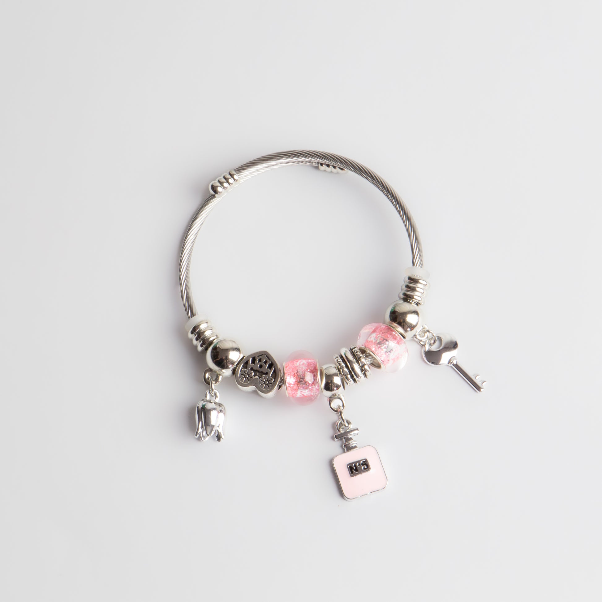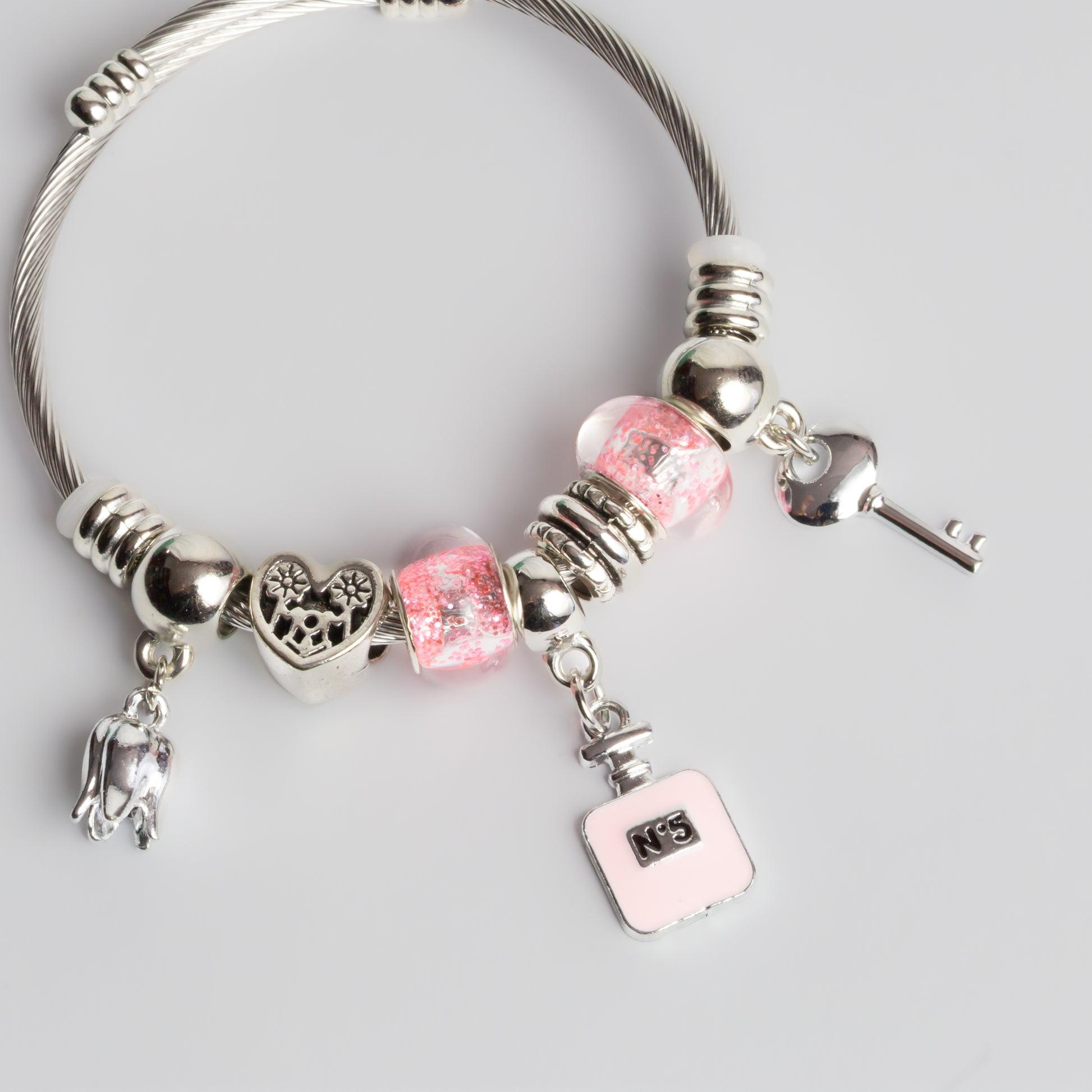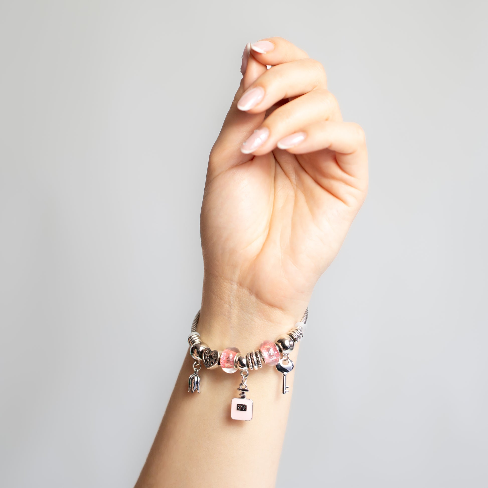 Brățară reglabilă magic scent cu charm-uri - Argintiu, Roz