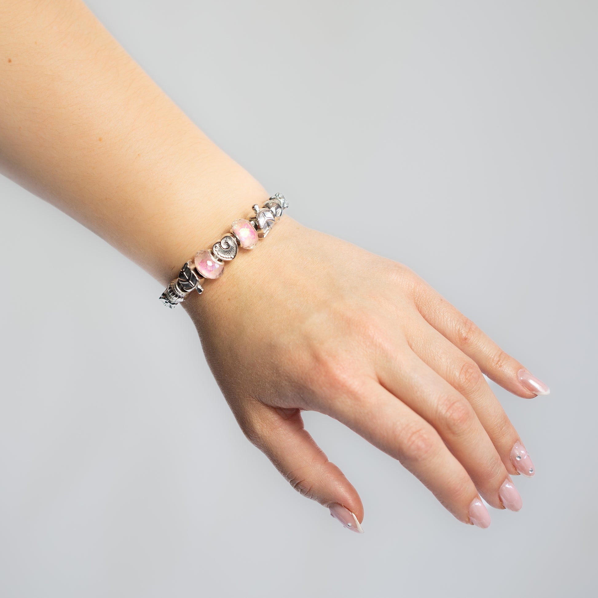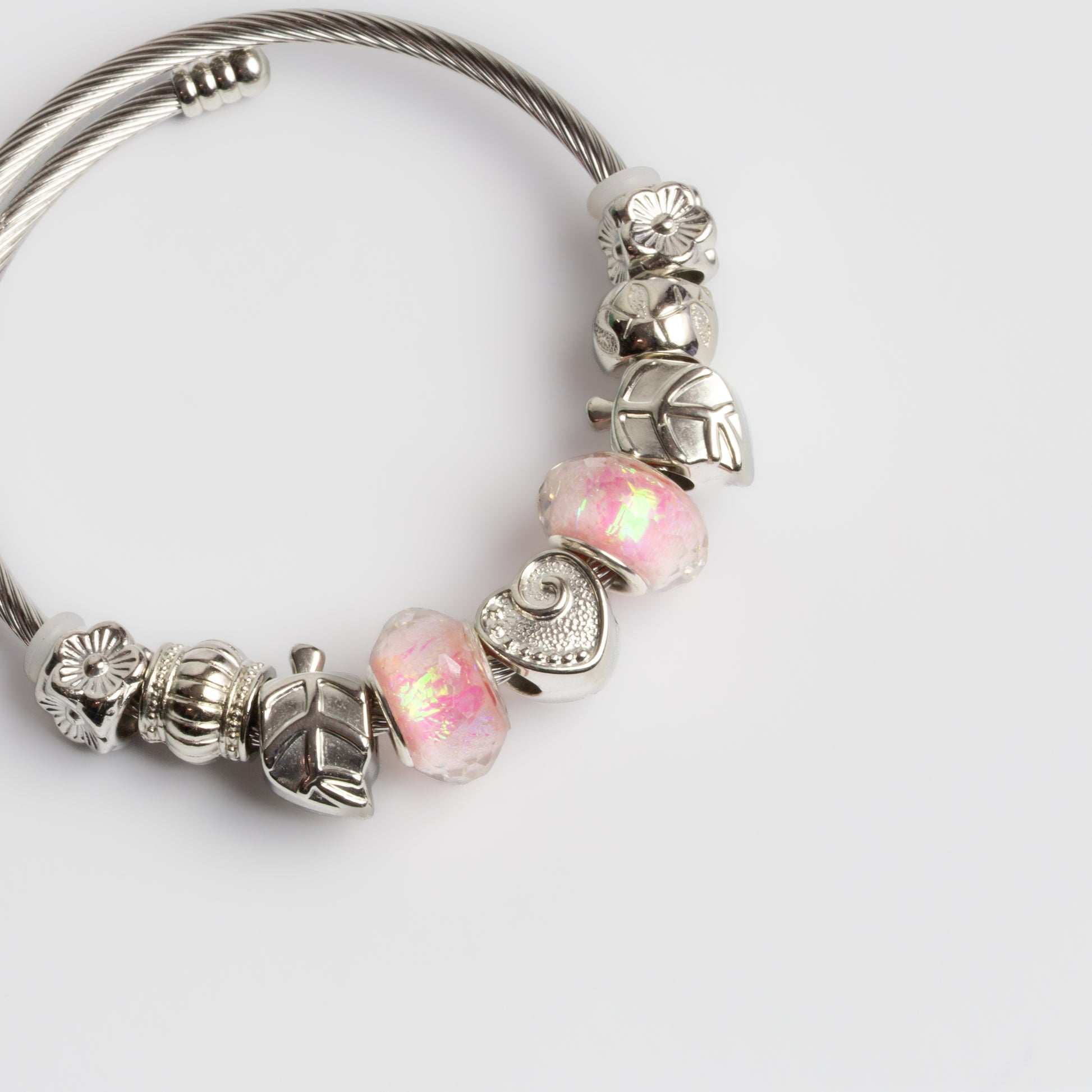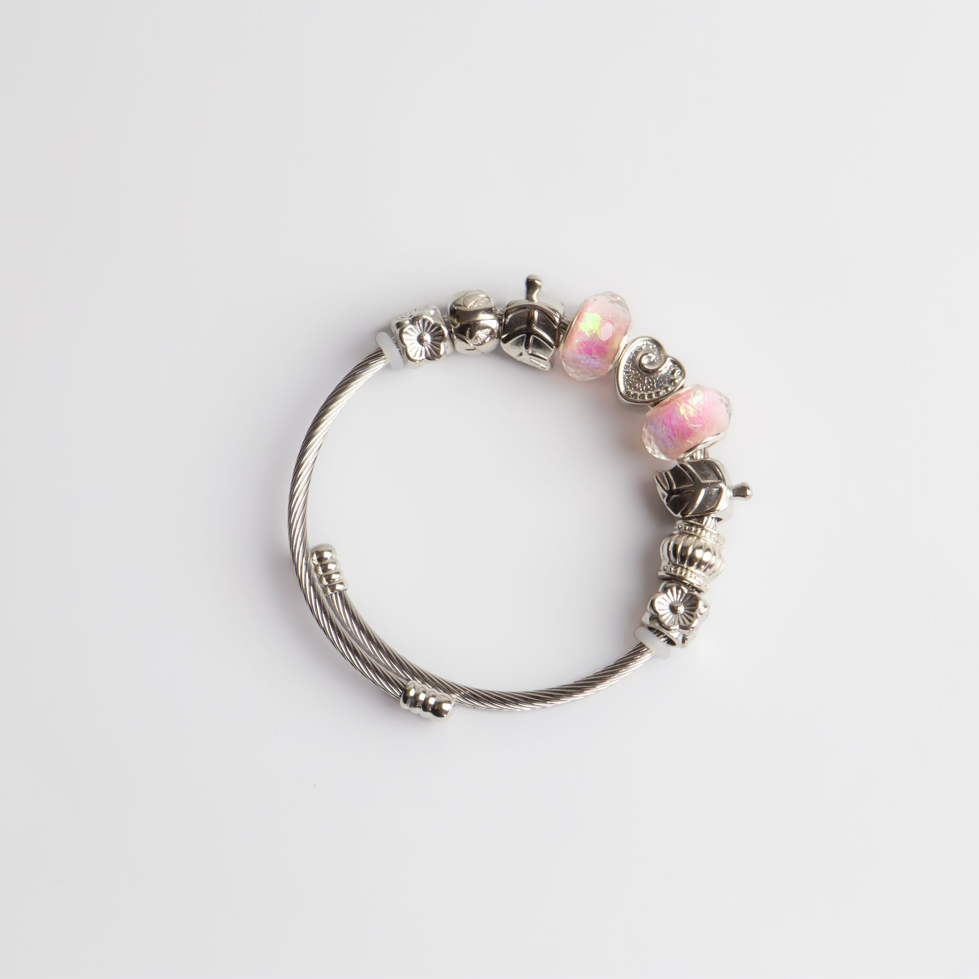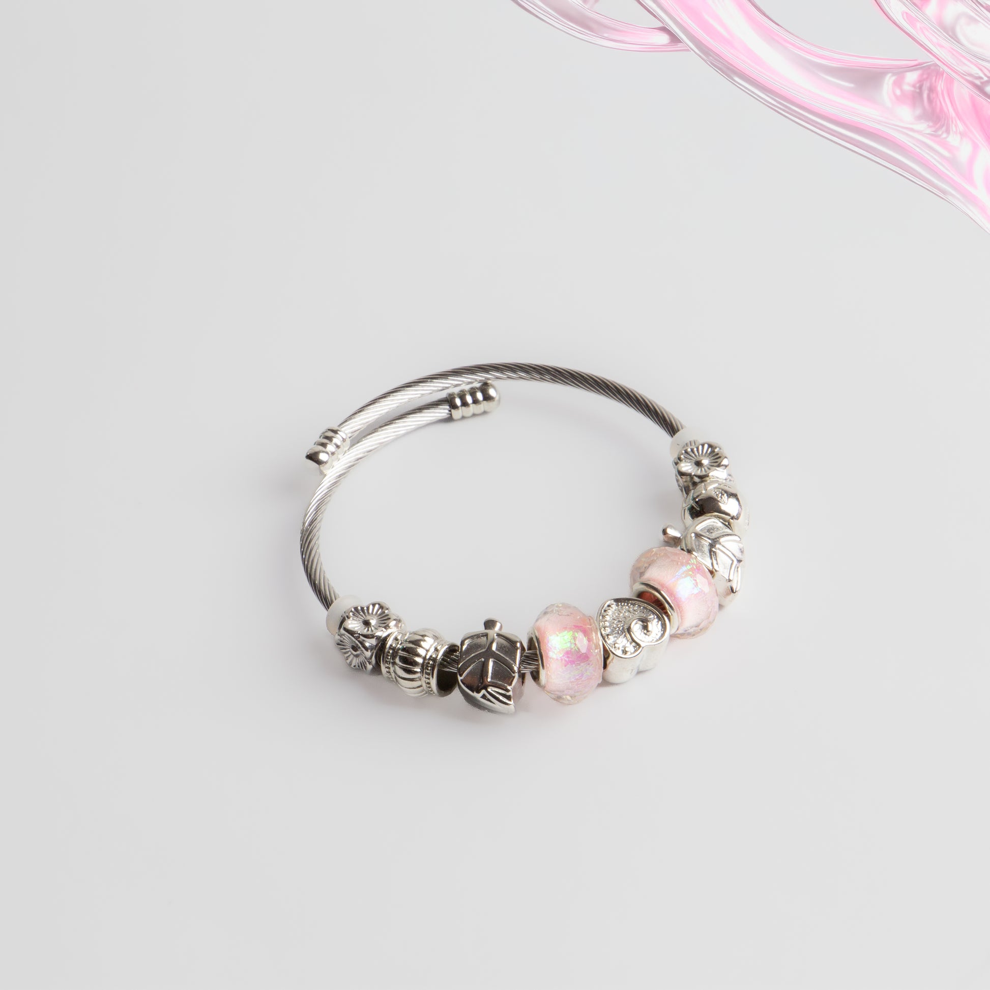 Adaugă un plus de rafinament ținutelor tale cu o brățară chic, ușor de purtat și asortat. Concepută cu detalii elegante și charm-uri delicate, această brățară este potrivită pentru orice încheietură oferind un confort maxim.