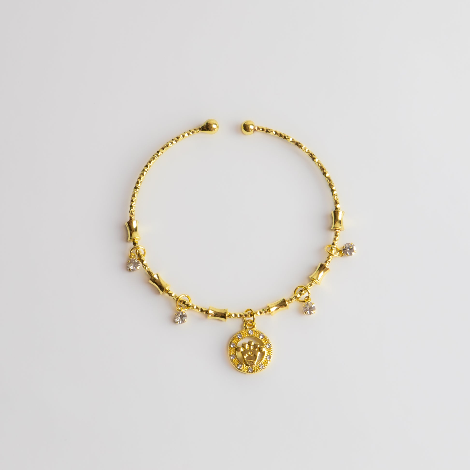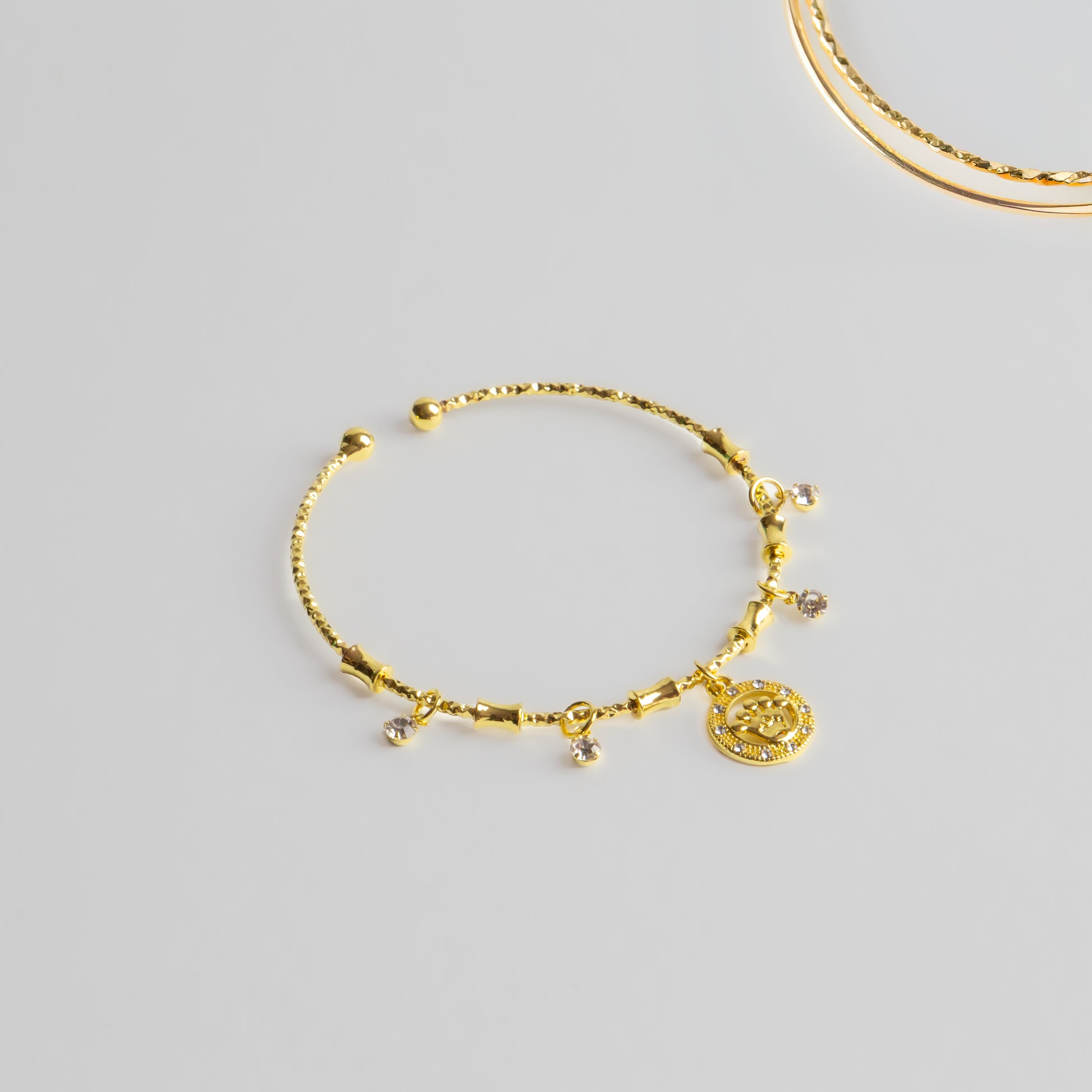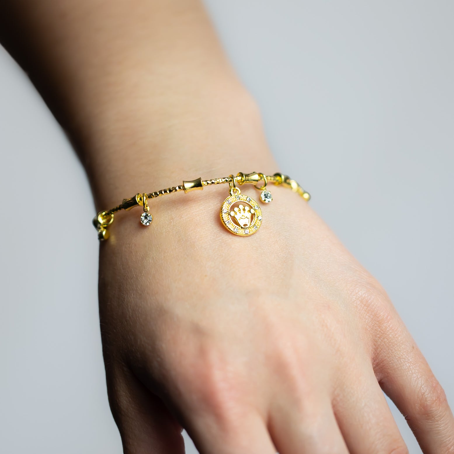 Adaugă un plus de rafinament ținutelor tale cu o brățară chic, ușor de purtat și asortat. Concepută cu detalii elegante și charm-uri delicate, această brățară este potrivită pentru orice încheietură oferind un confort maxim.