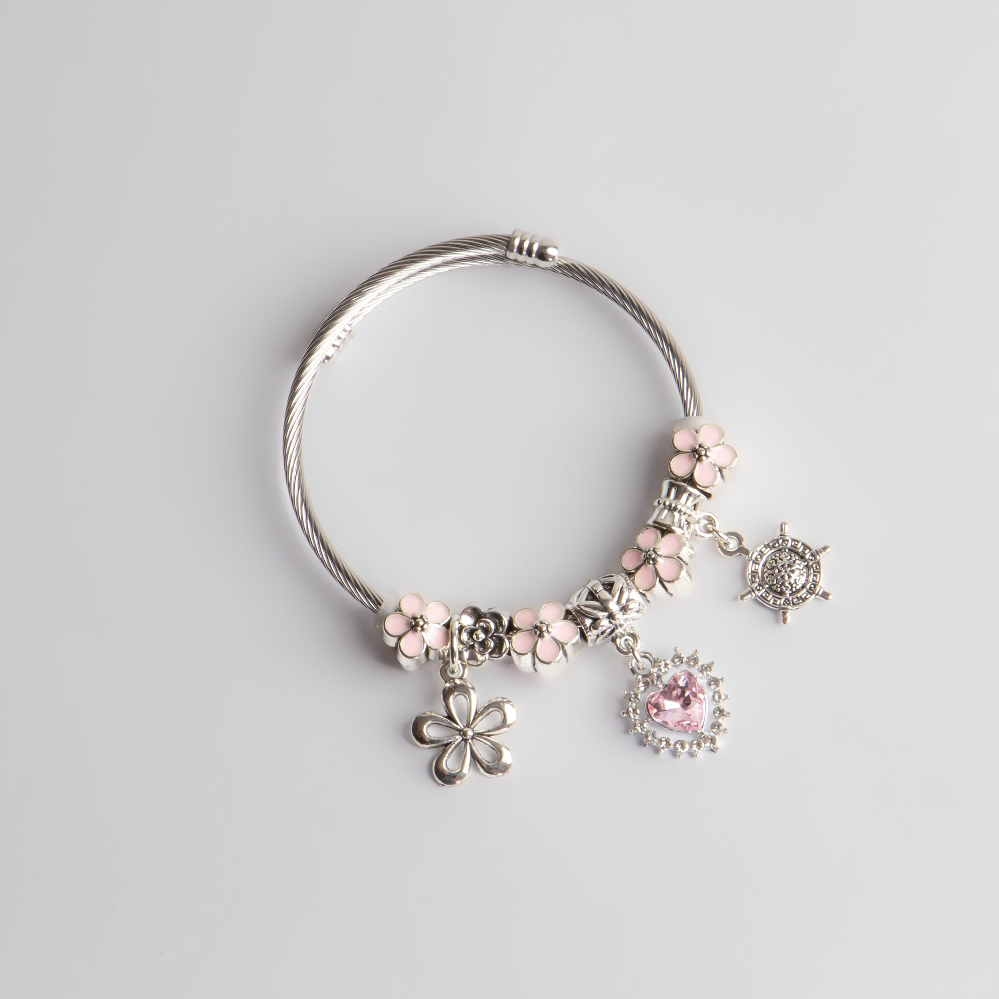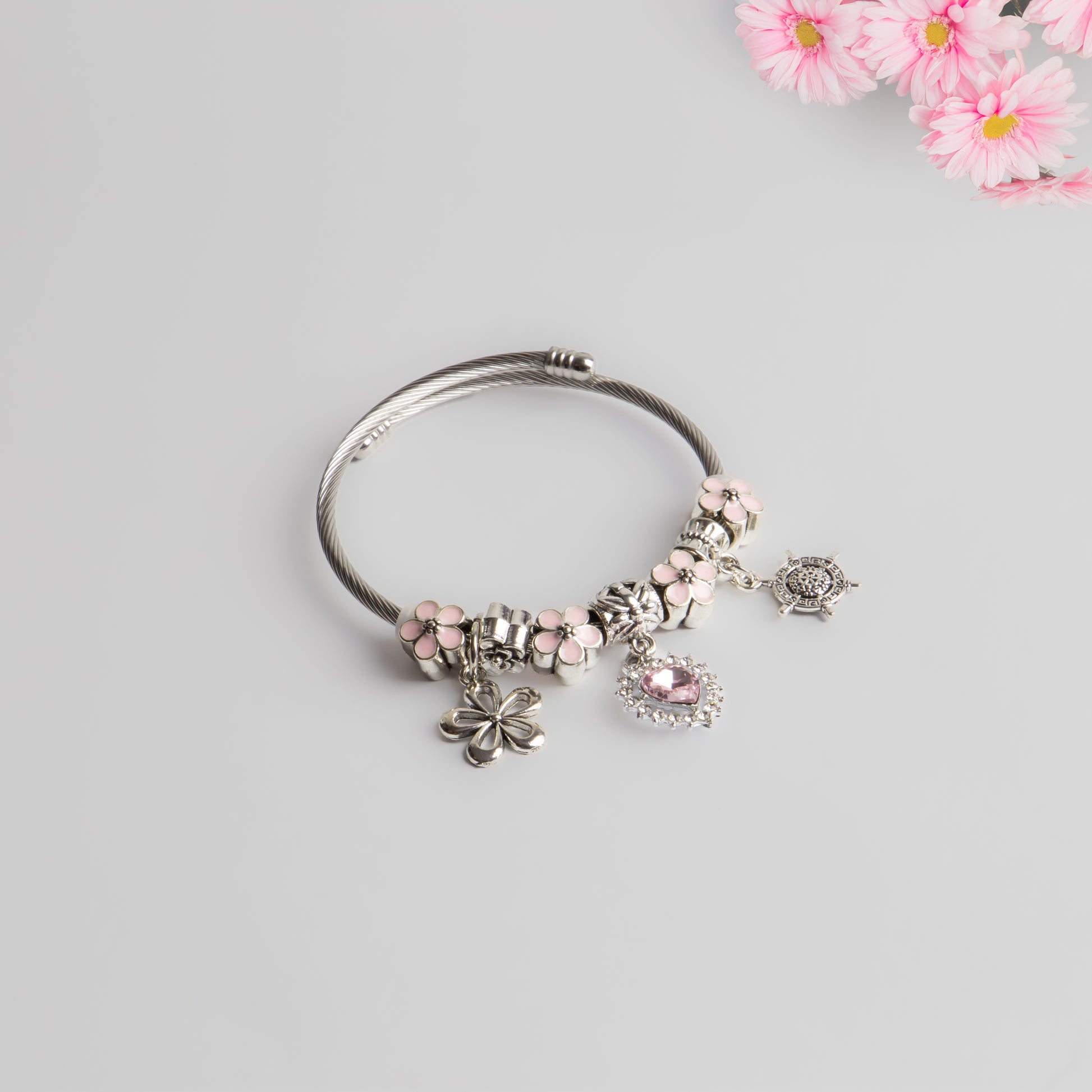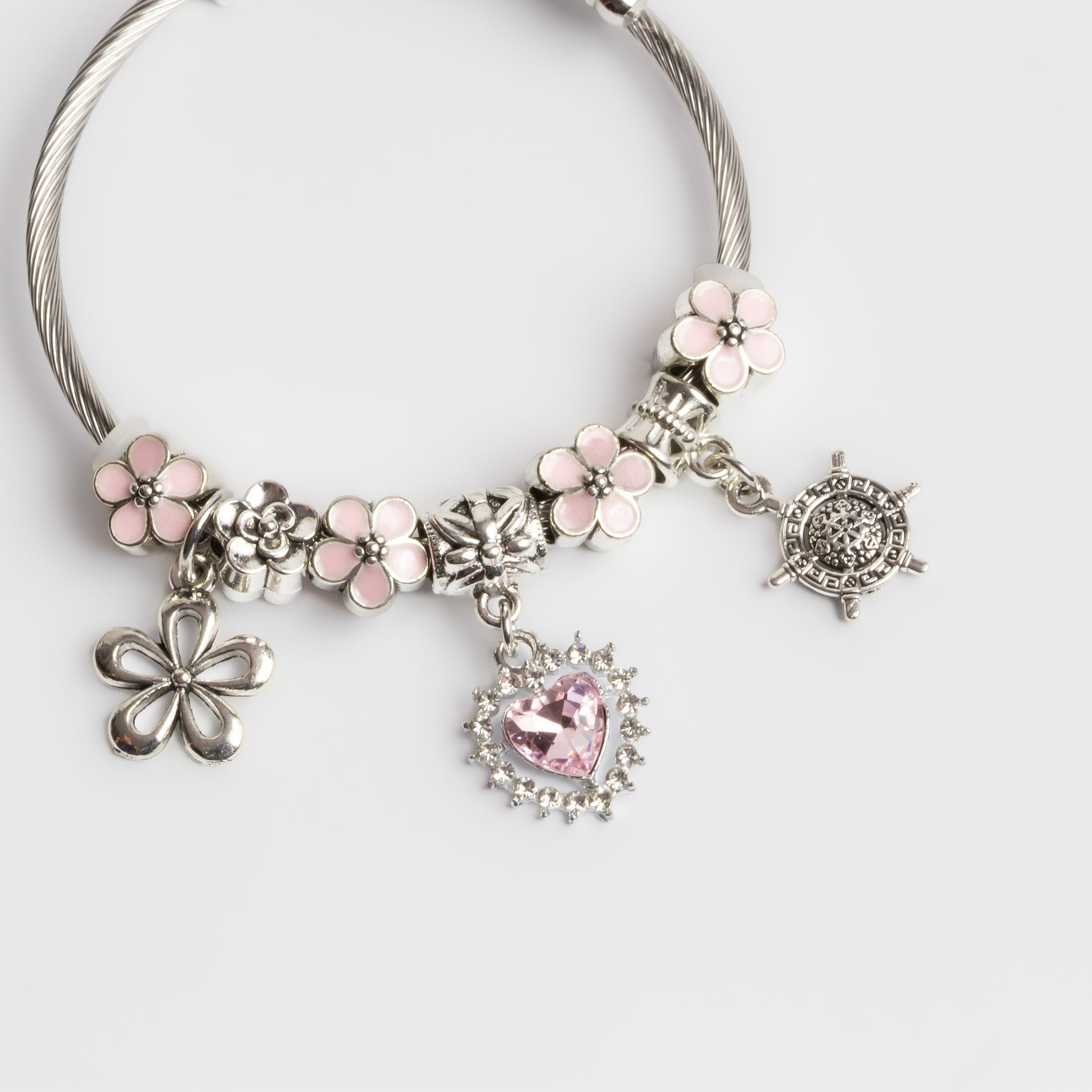 Brățară reglabilă sea of love cu charm-uri și pietre - Argintiu, Roz