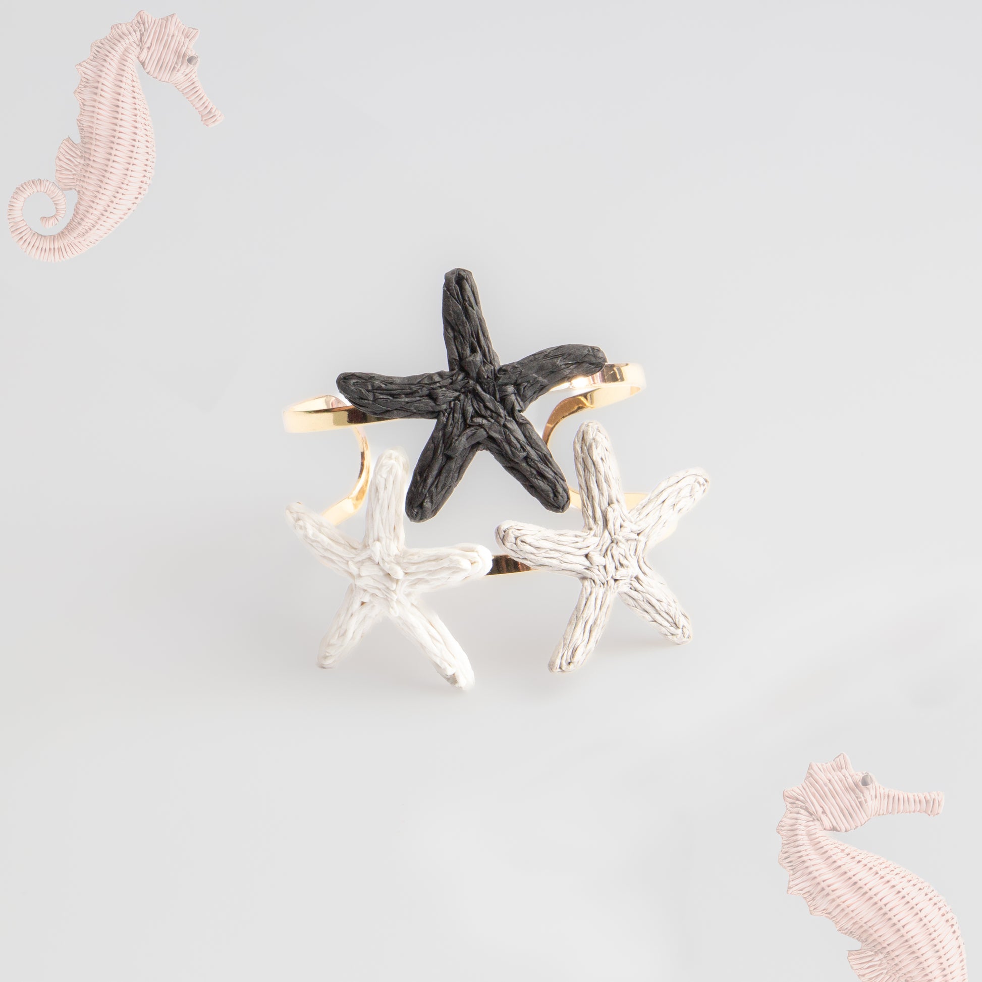 Brățară reglabilă seastar triu din ratan - Negru