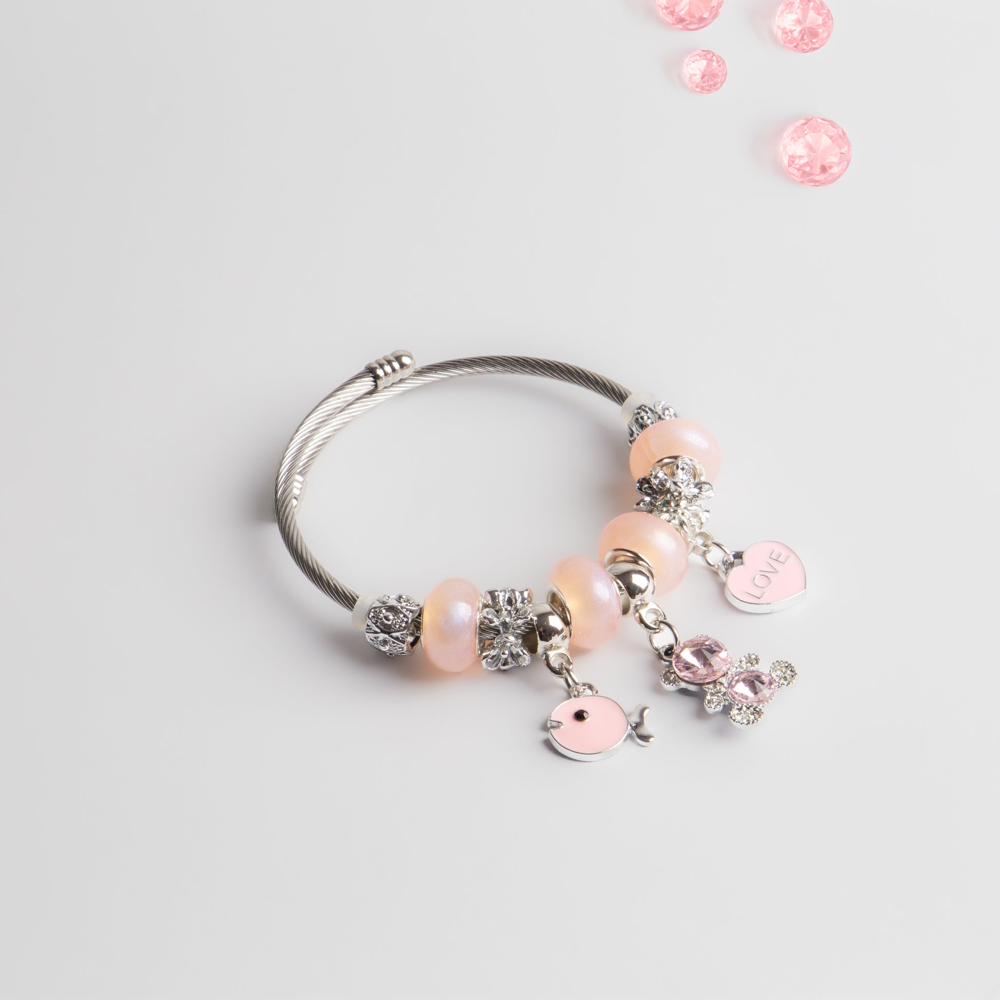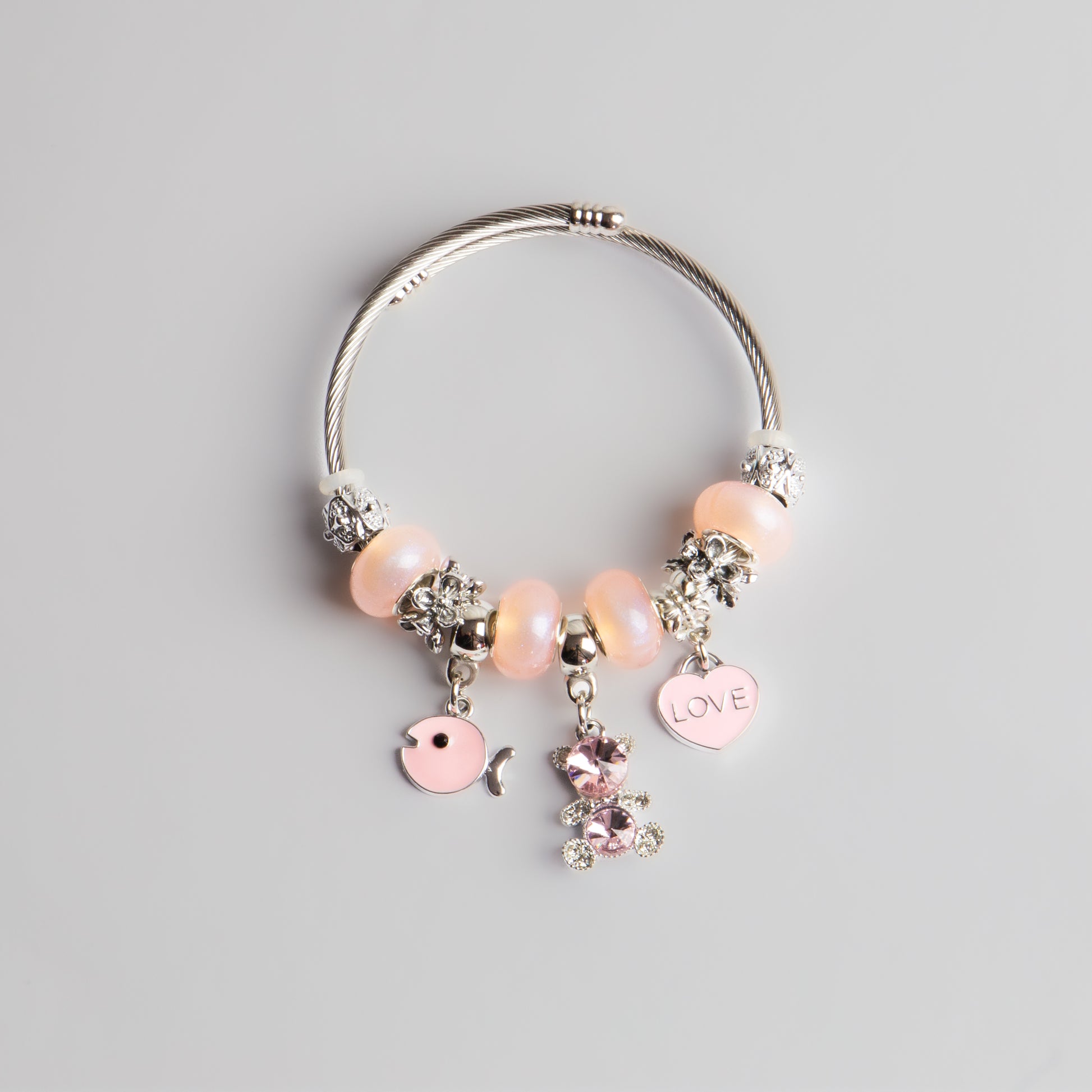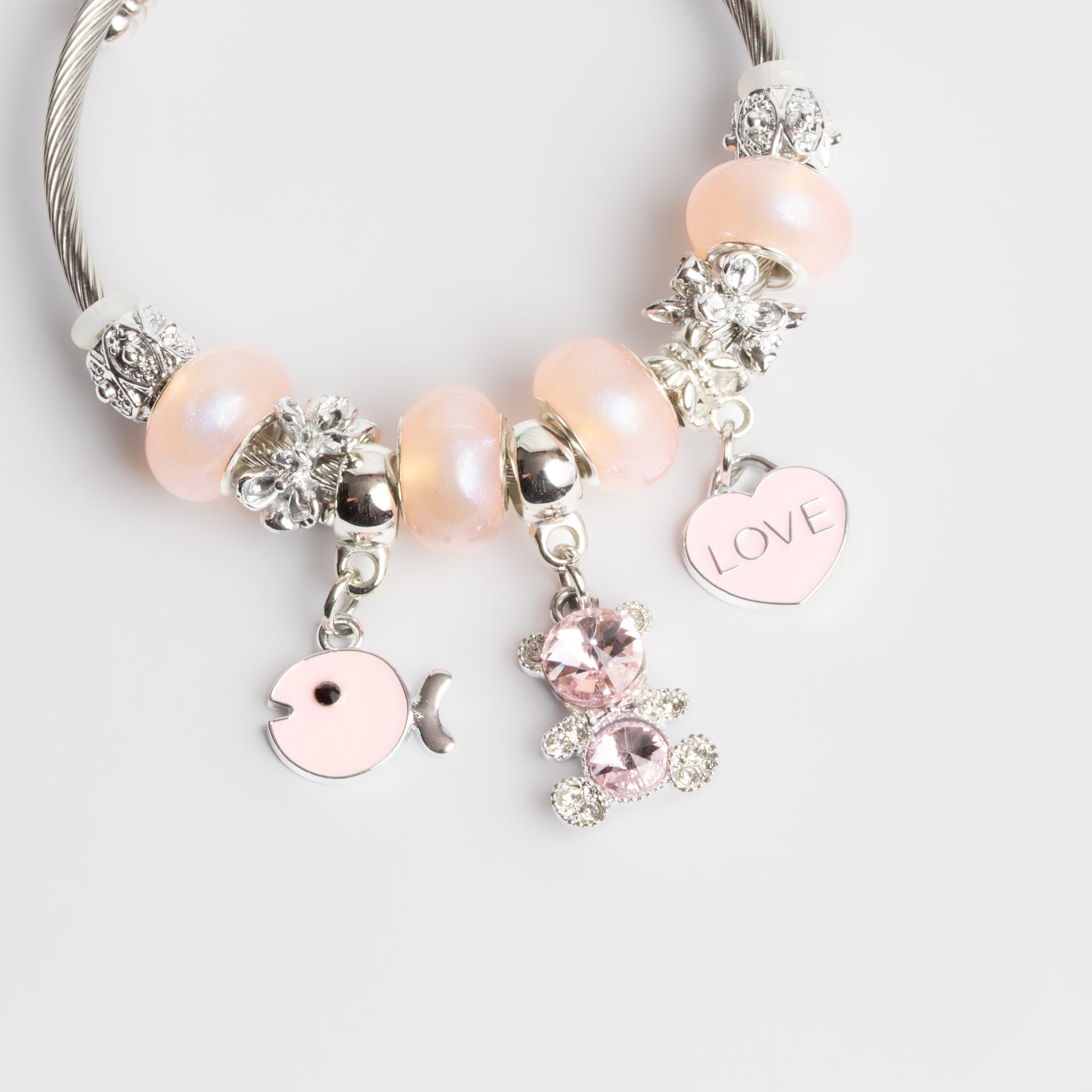 Brățară reglabilă teddy garden cu charm-uri - Argintiu, Roz