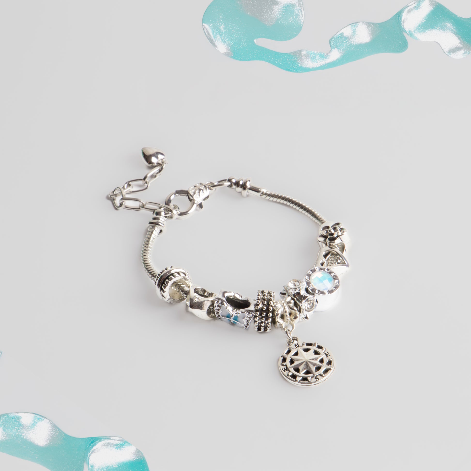 Brățară reglabilă travel love cu charm-uri - Argintiu