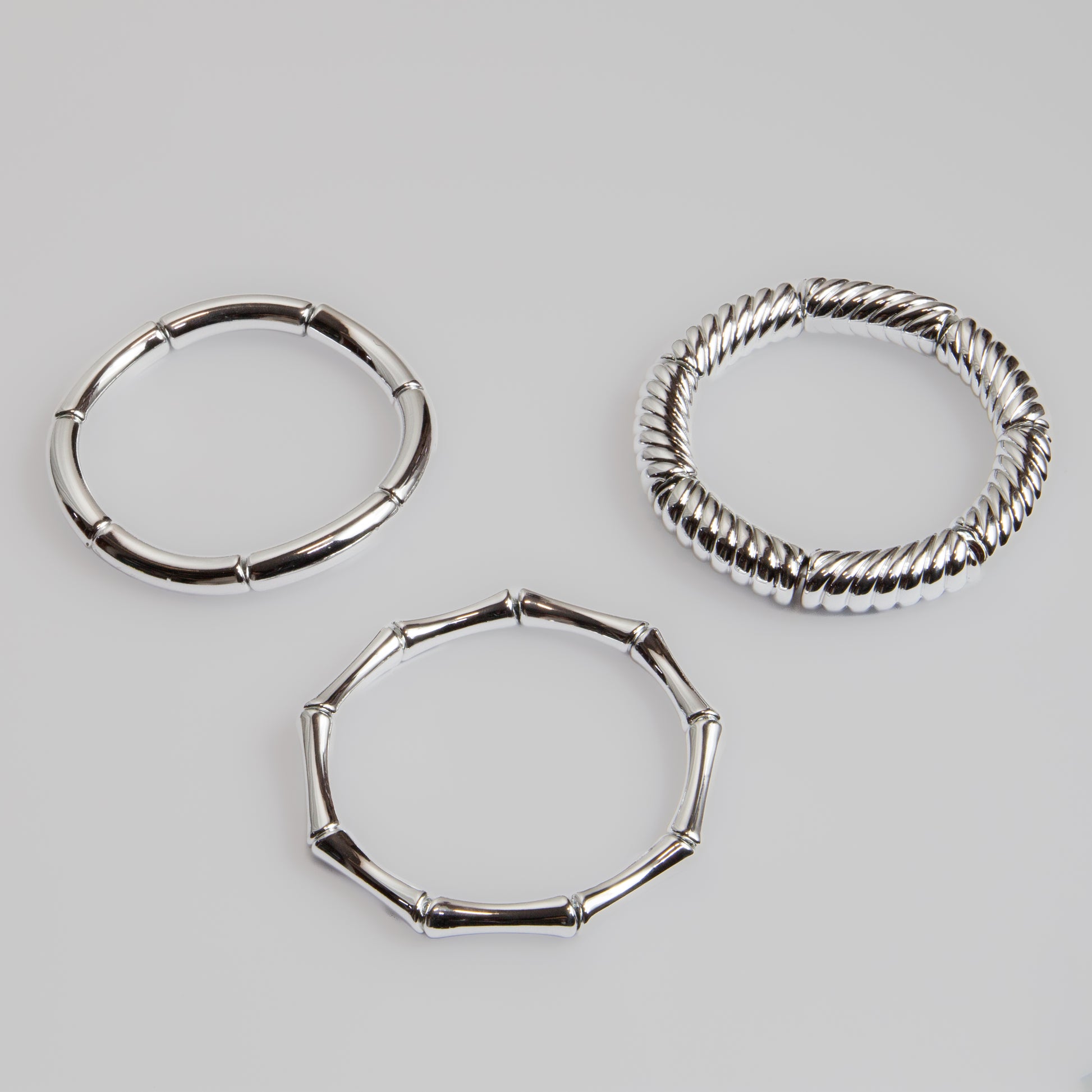 Brățări elastice cu secțiuni geometrice trio arches, set 3 - Argintiu