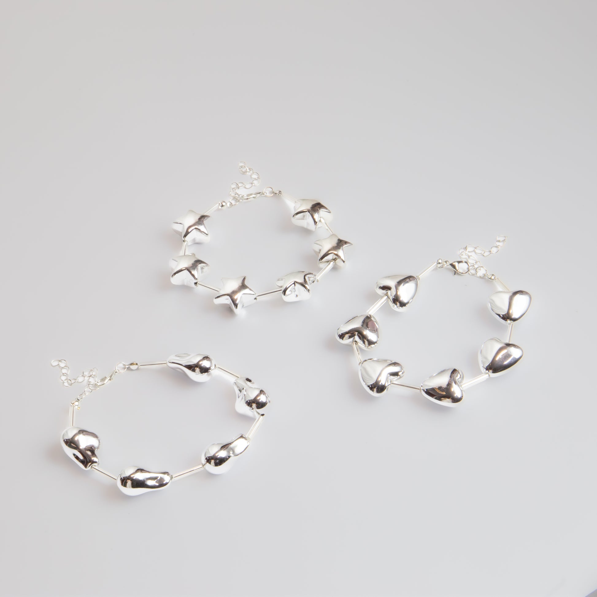 Brățări reglabilă celestial trio cu biluțe, set 3 - Argintiu