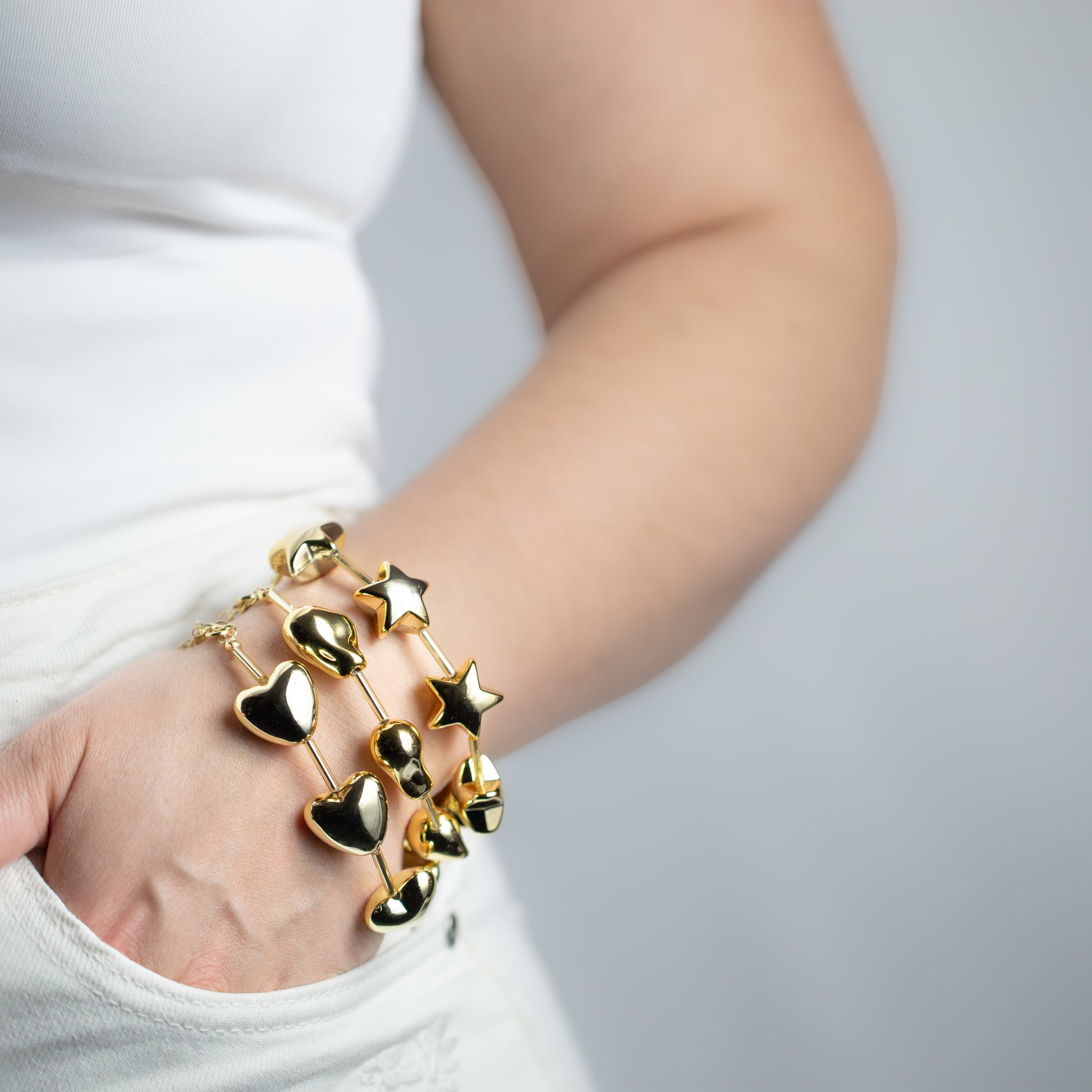 Adaugă un plus de rafinament ținutelor tale cu o brățară chic, ușor de purtat și asortat. Concepută cu detalii elegante și charm-uri delicate, această brățară este potrivită pentru orice încheietură oferind un confort maxim.