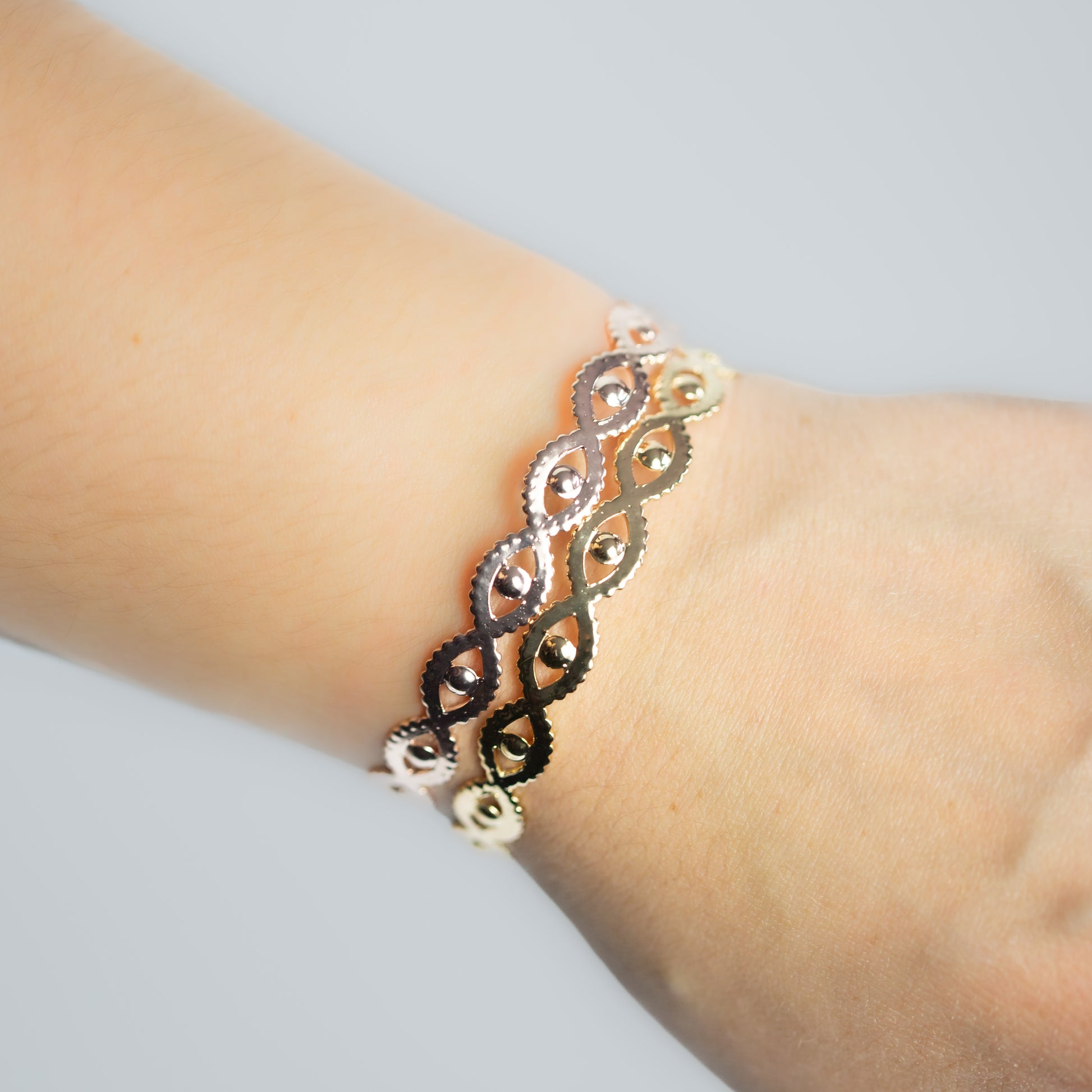 Adaugă un plus de rafinament ținutelor tale cu o brățară chic, ușor de purtat și asortat. Concepută cu detalii elegante și charm-uri delicate, această brățară este potrivită pentru orice încheietură oferind un confort maxim.