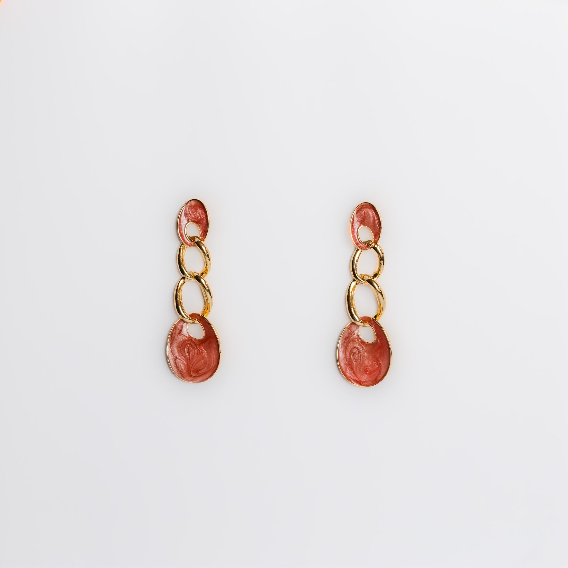 Cercei aurii cu lanț lucios - Roșu