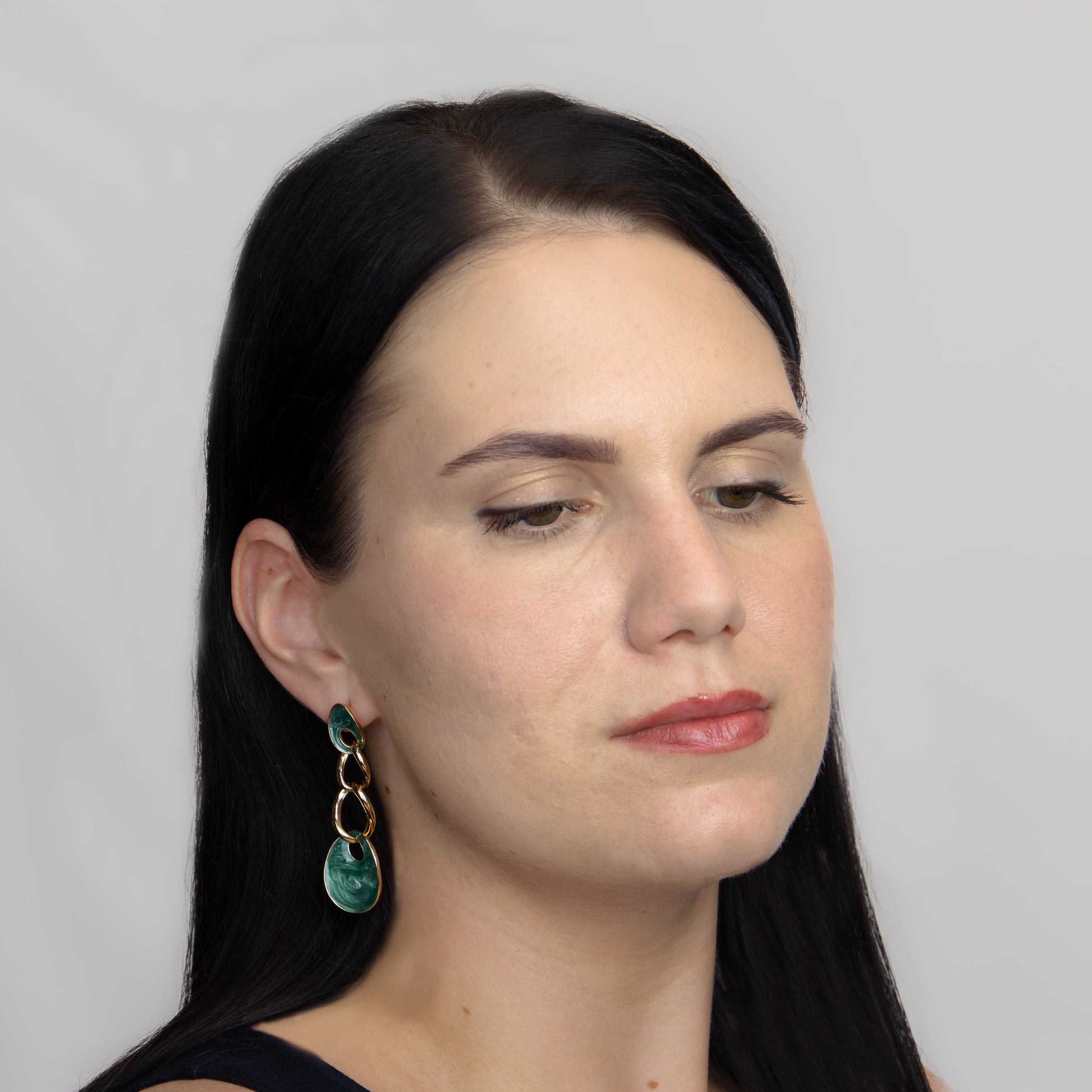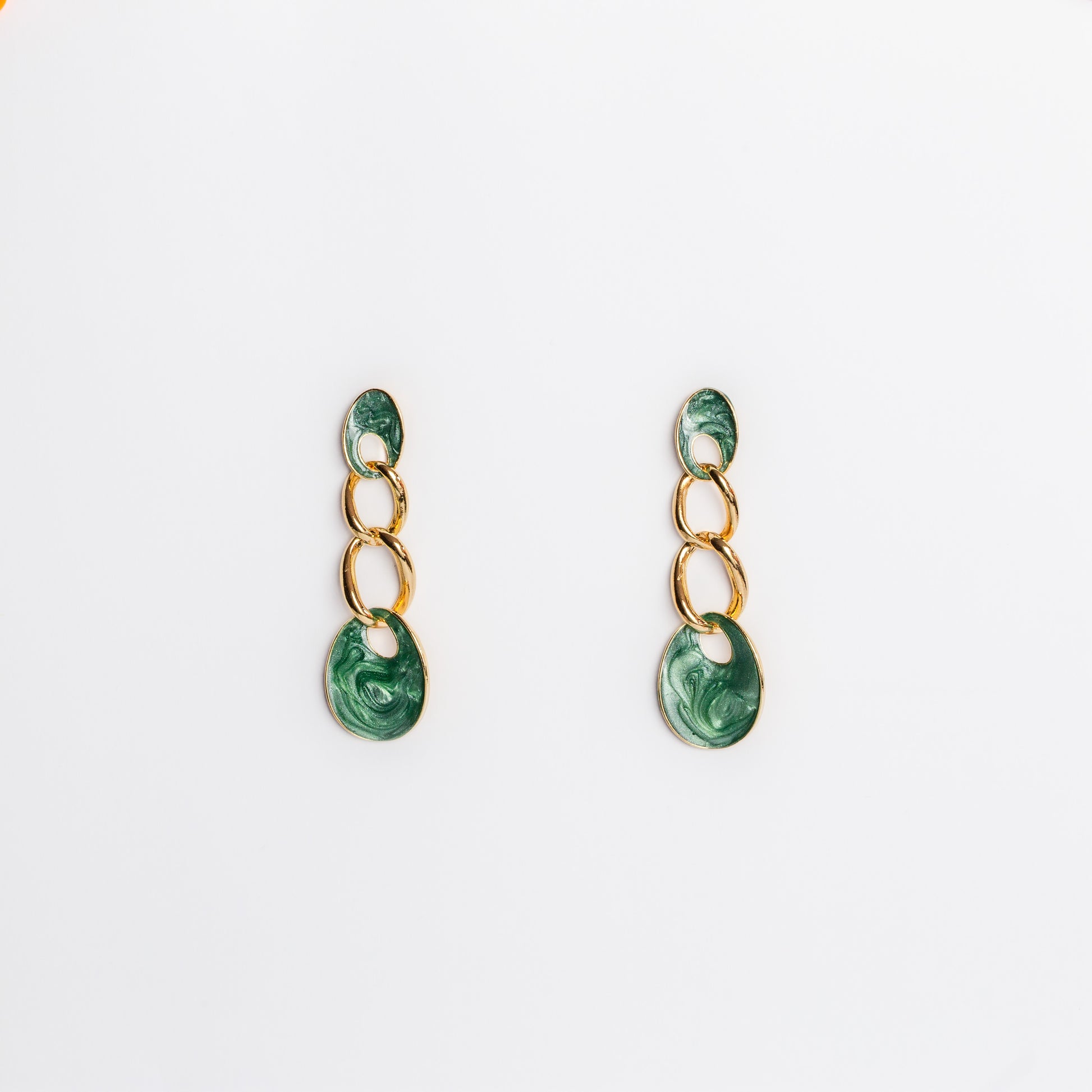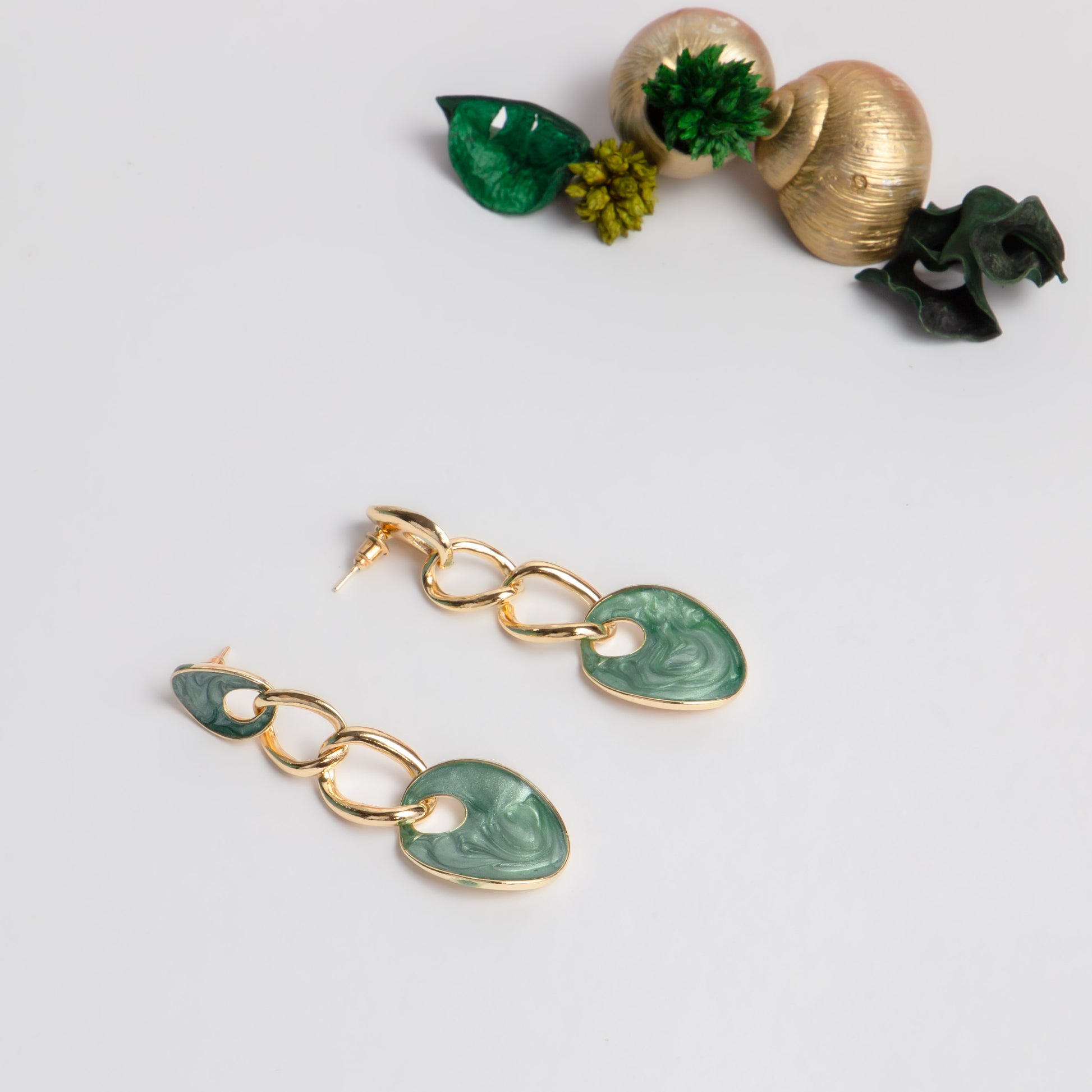 Cercei aurii cu lanț lucios - Verde