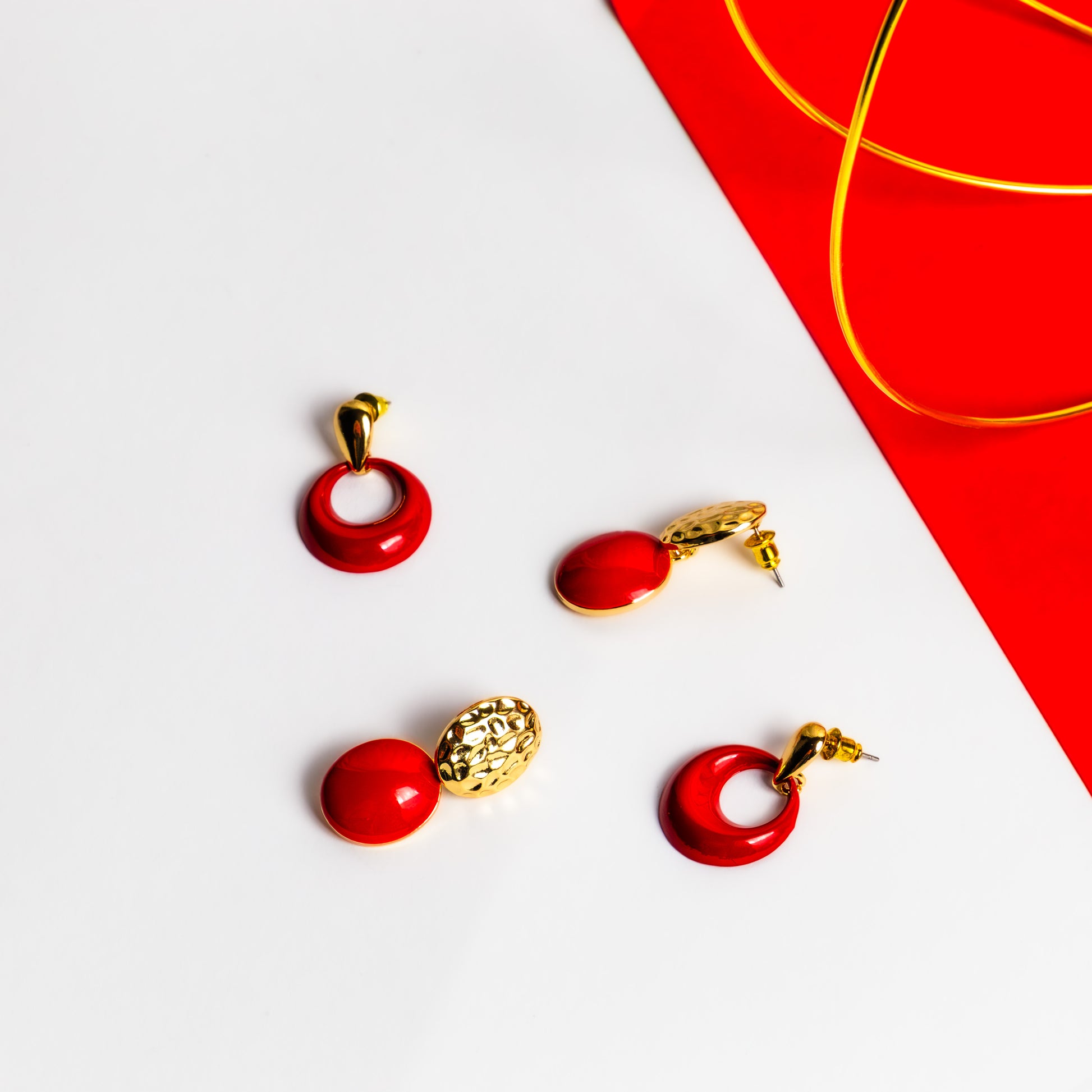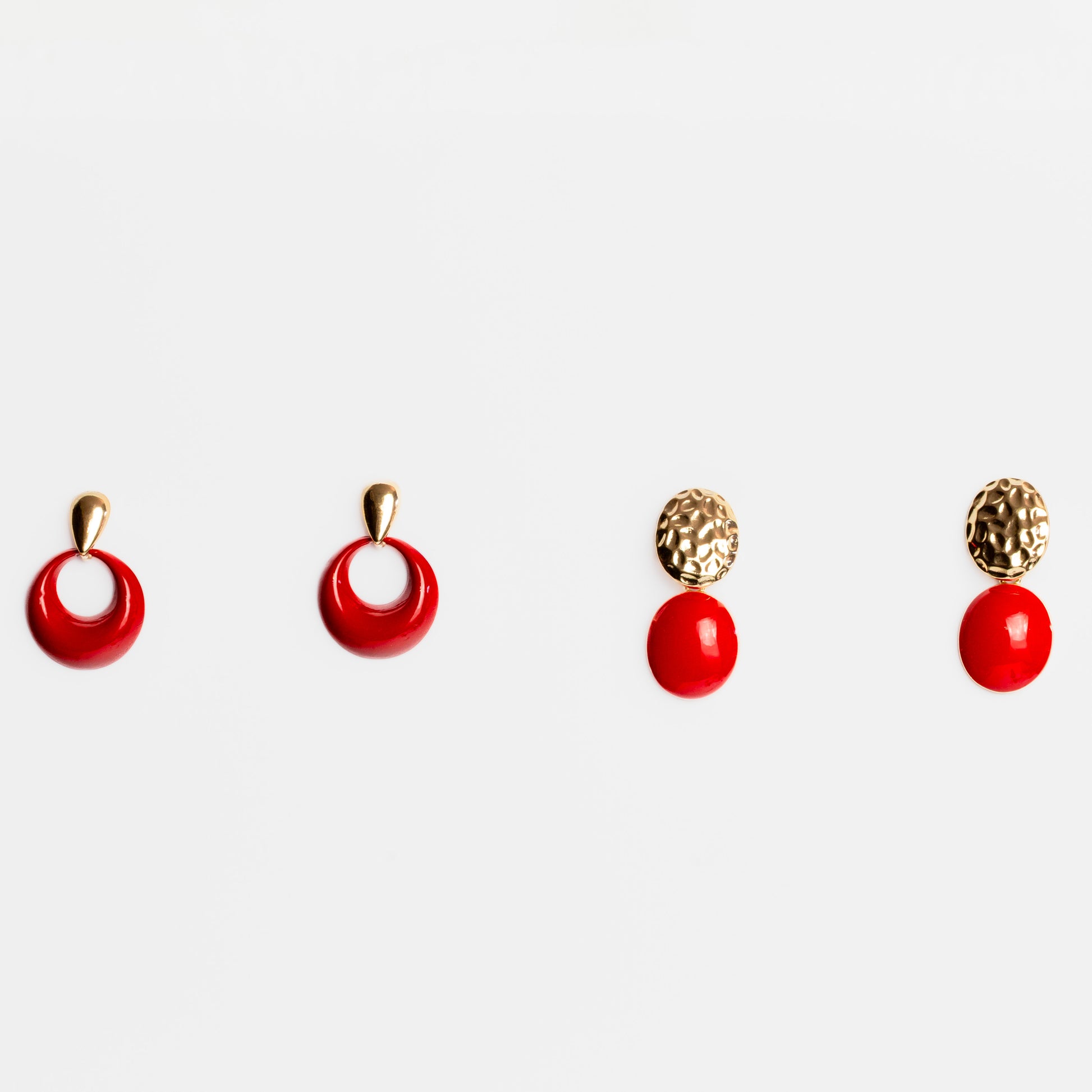 Cercei cercuri dance, set 2 - Auriu, Roșu