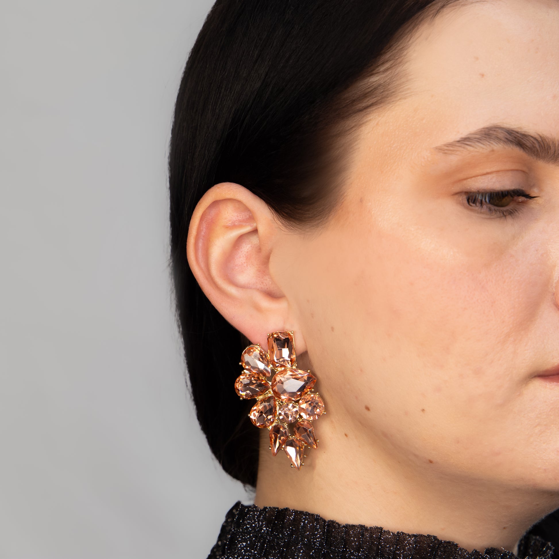 Cercei eleganți cu pietre mari, Crystal Heaven - Champagne