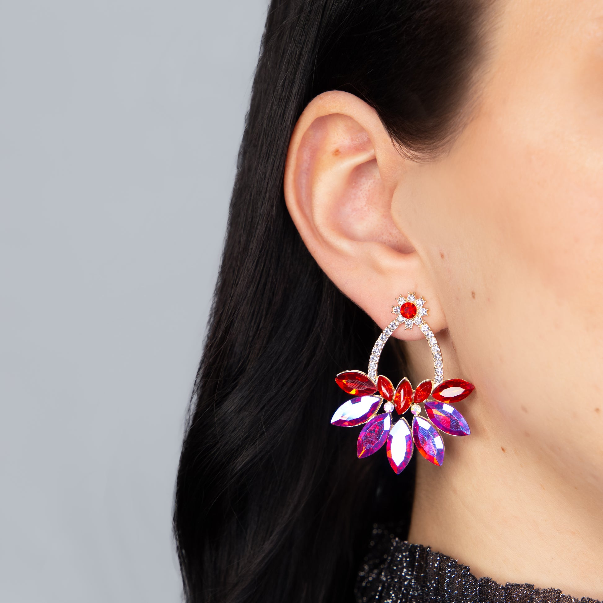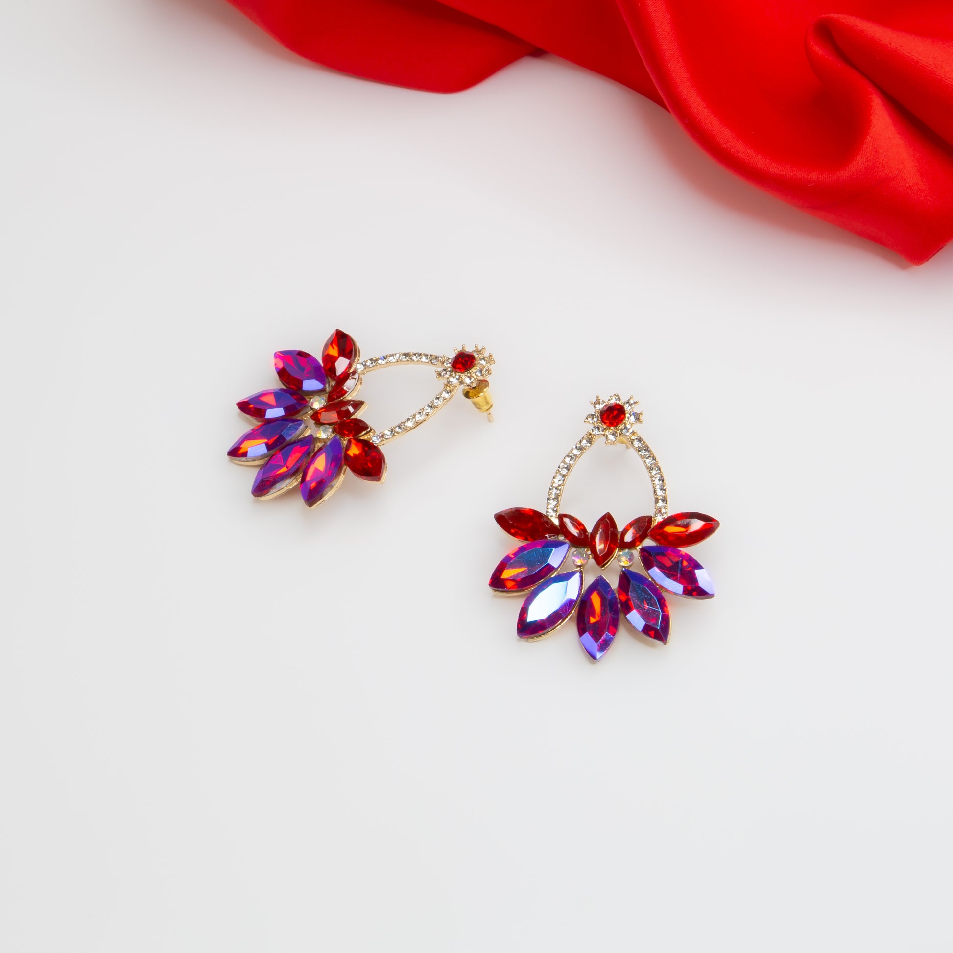 Cercei eleganți cu pietre strălucitoare, Destin Imperial - Roșu Magestic