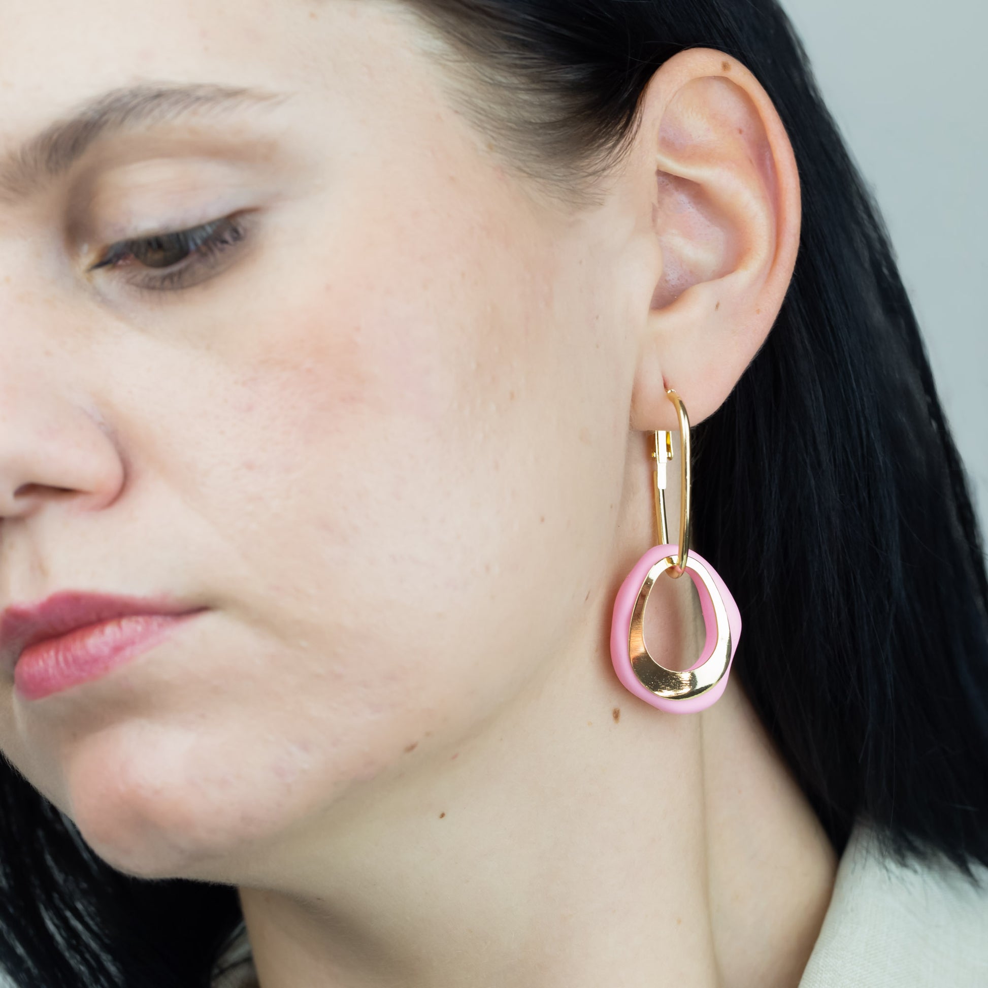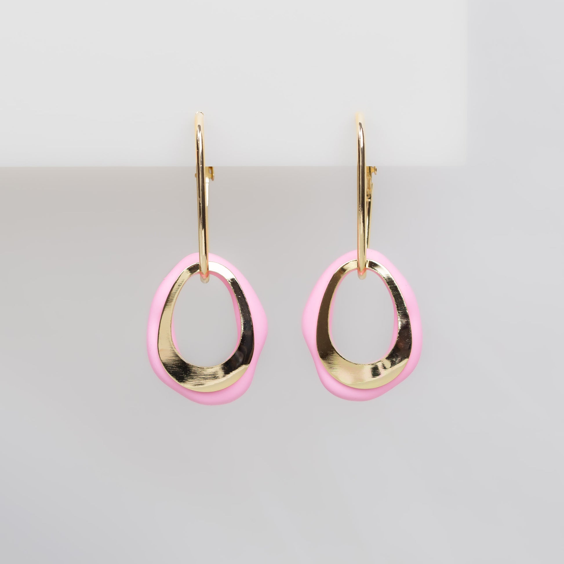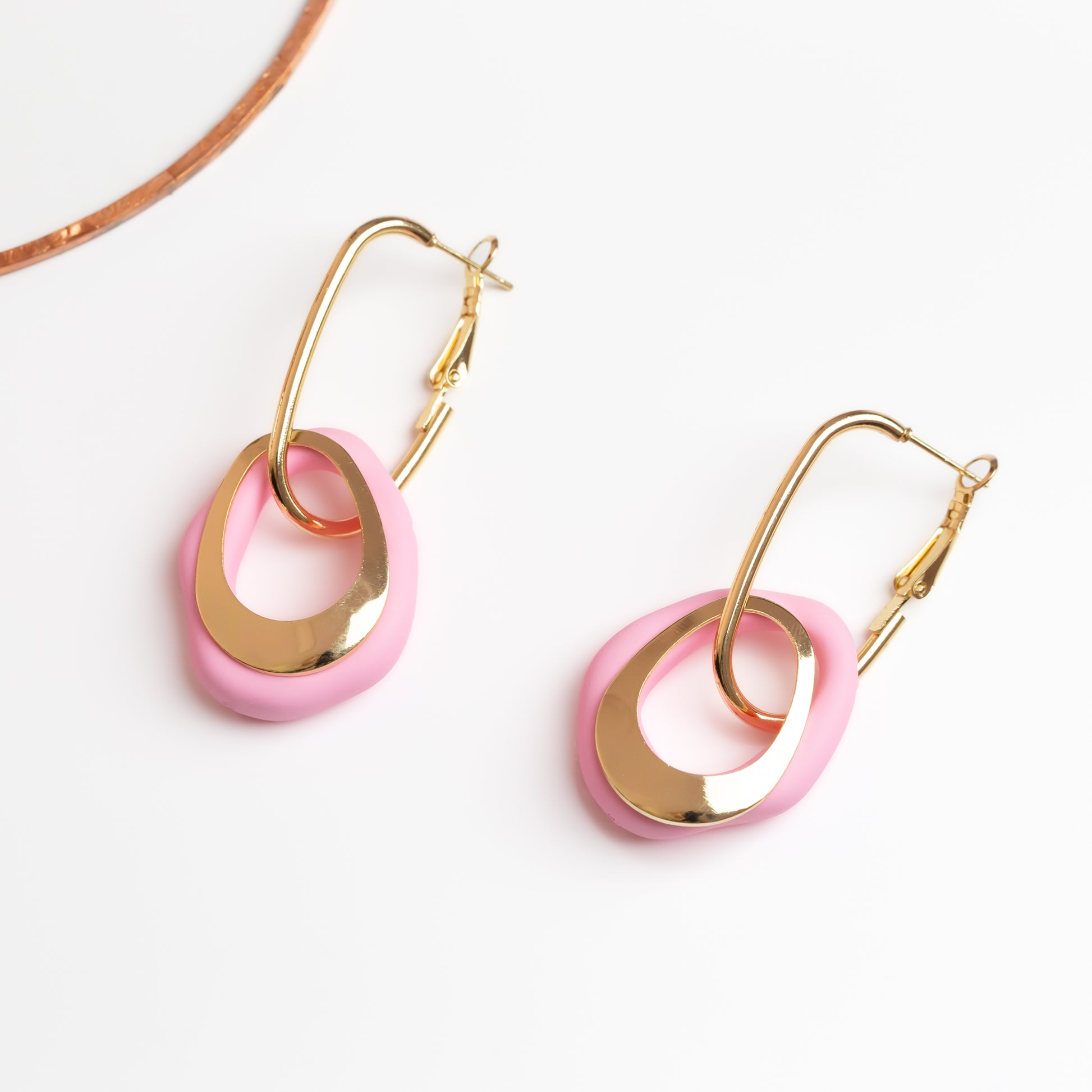 Cercei cu elemente aurii și verigă siliconată - Roz