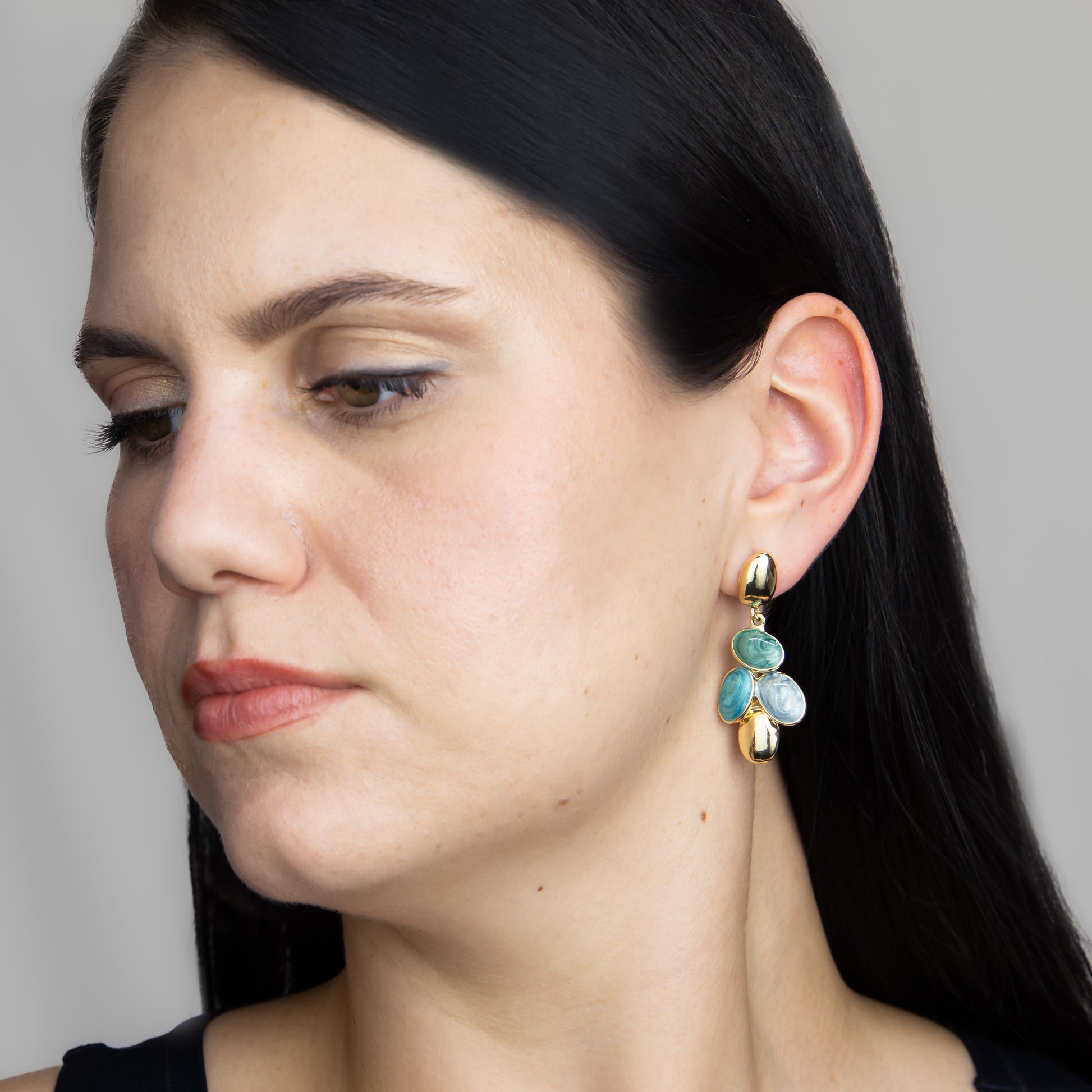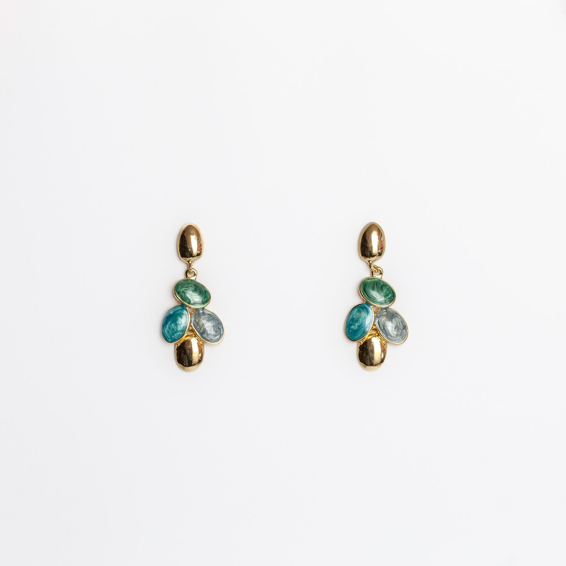 Cercei forme ovale vesele - Auriu, Verde