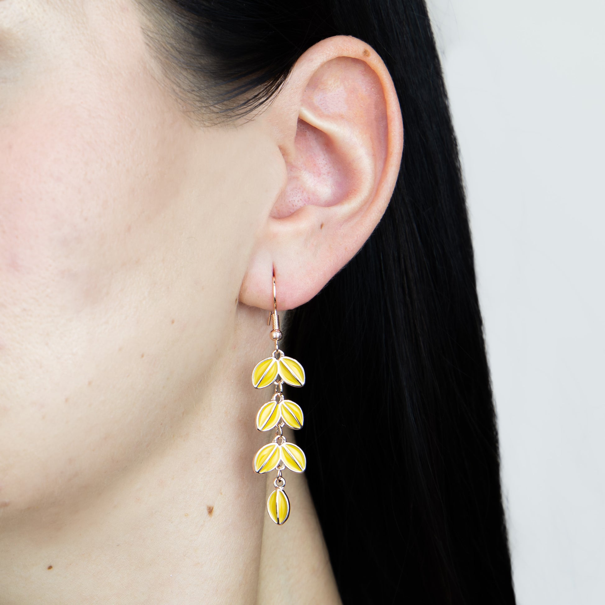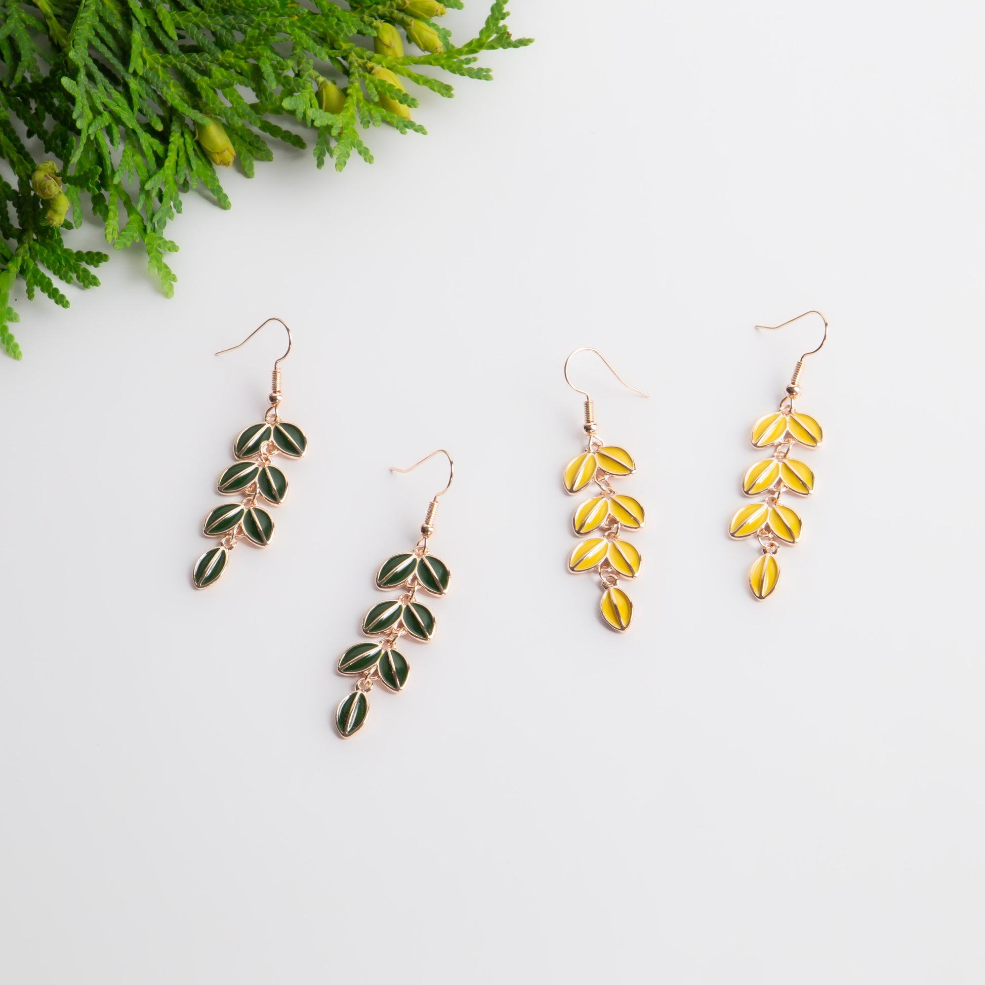Cercei frunze lucioase, set 2 - Verde, Galben