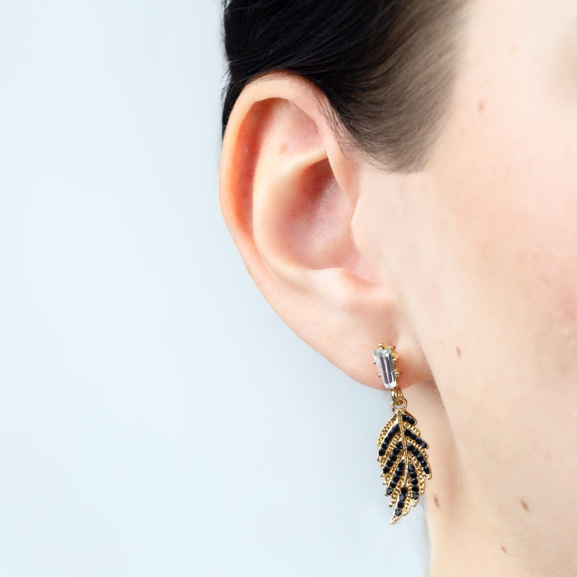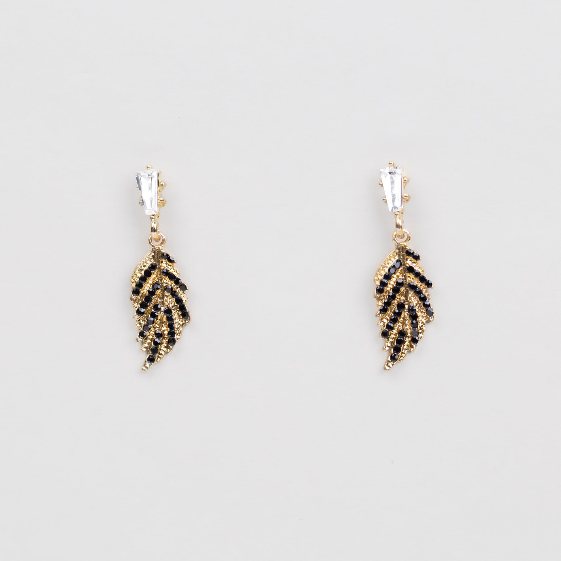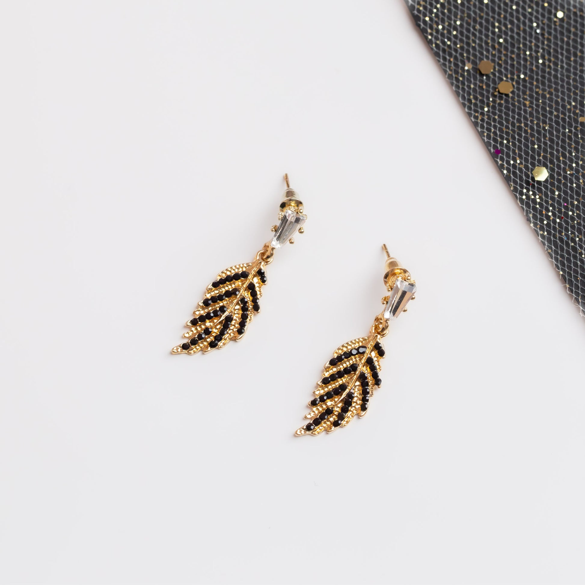 Cercei cu frunzuliță aurie și ștrasuri negre