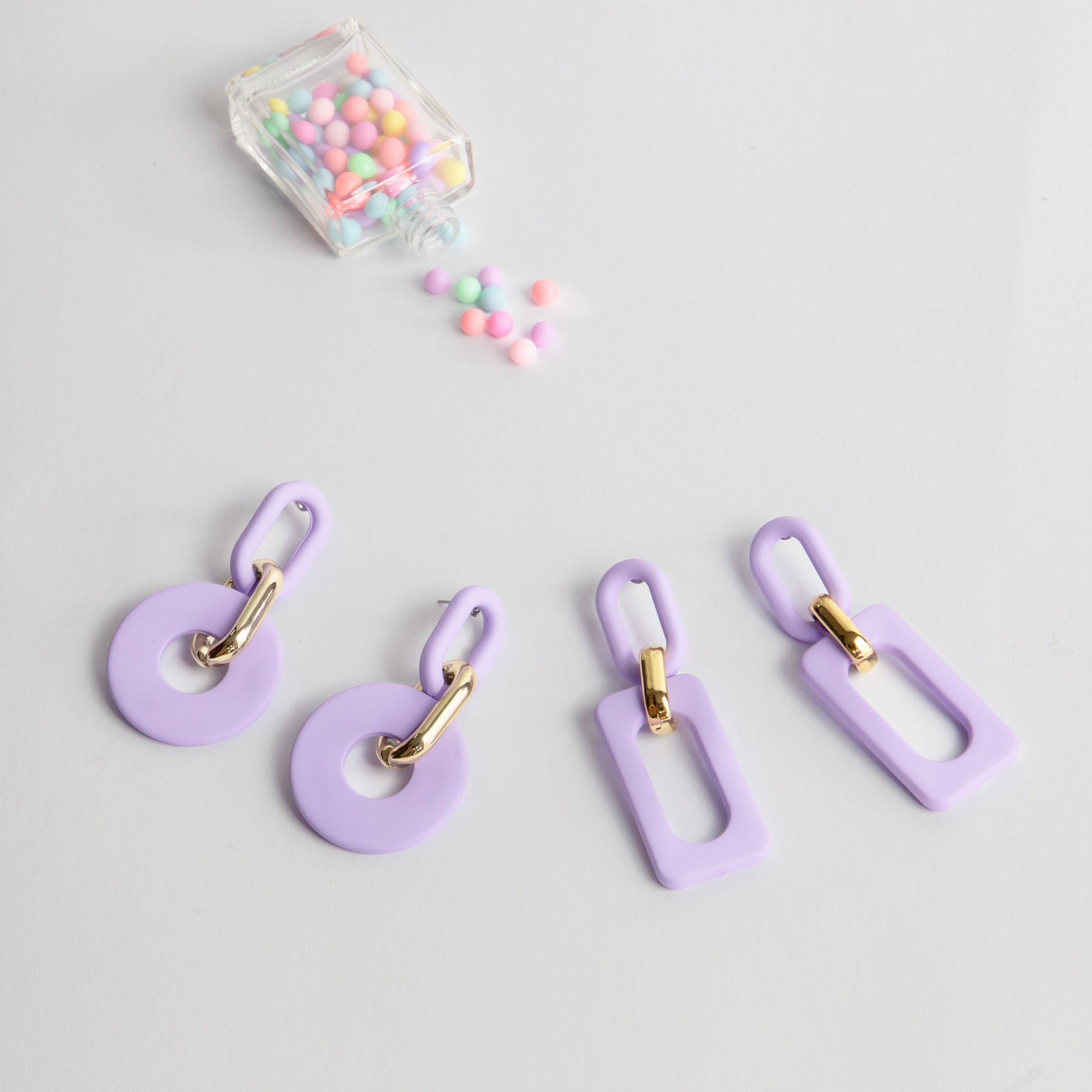 Cercei geo light ușori cu textură de silicon, set 2 - Mov