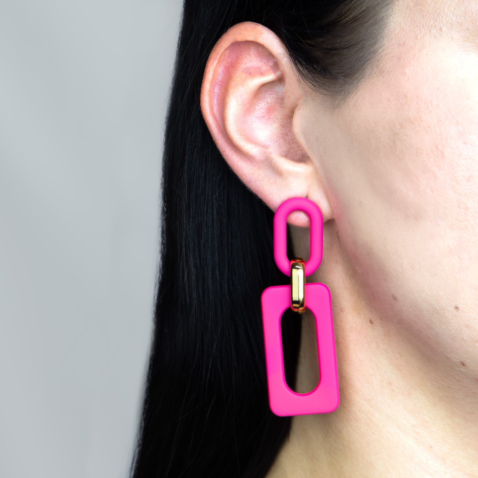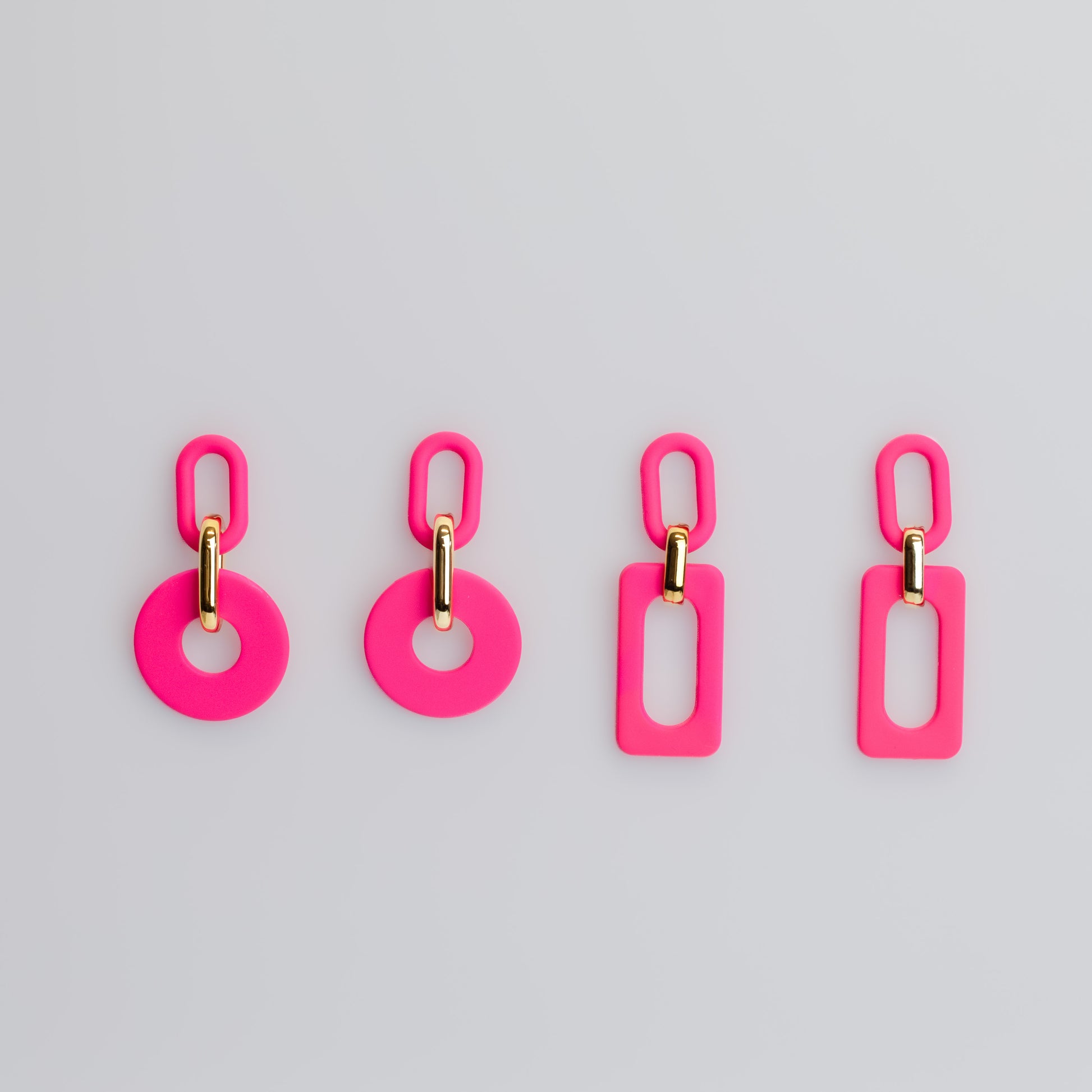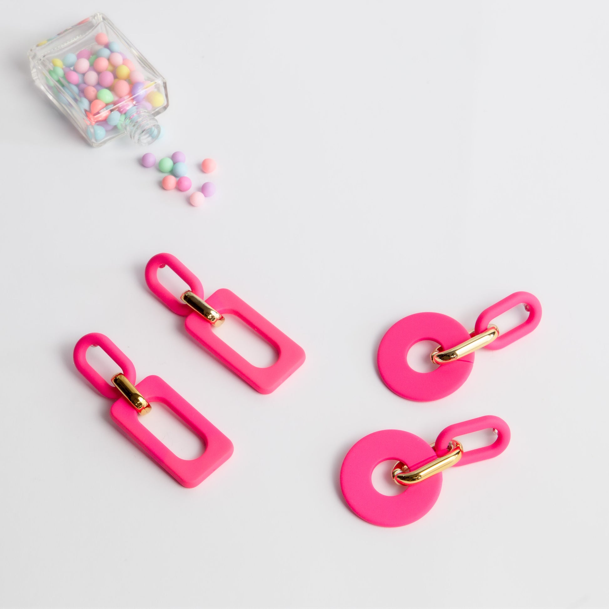 Cercei geo light ușori cu textură de silicon, set 2 - Roz