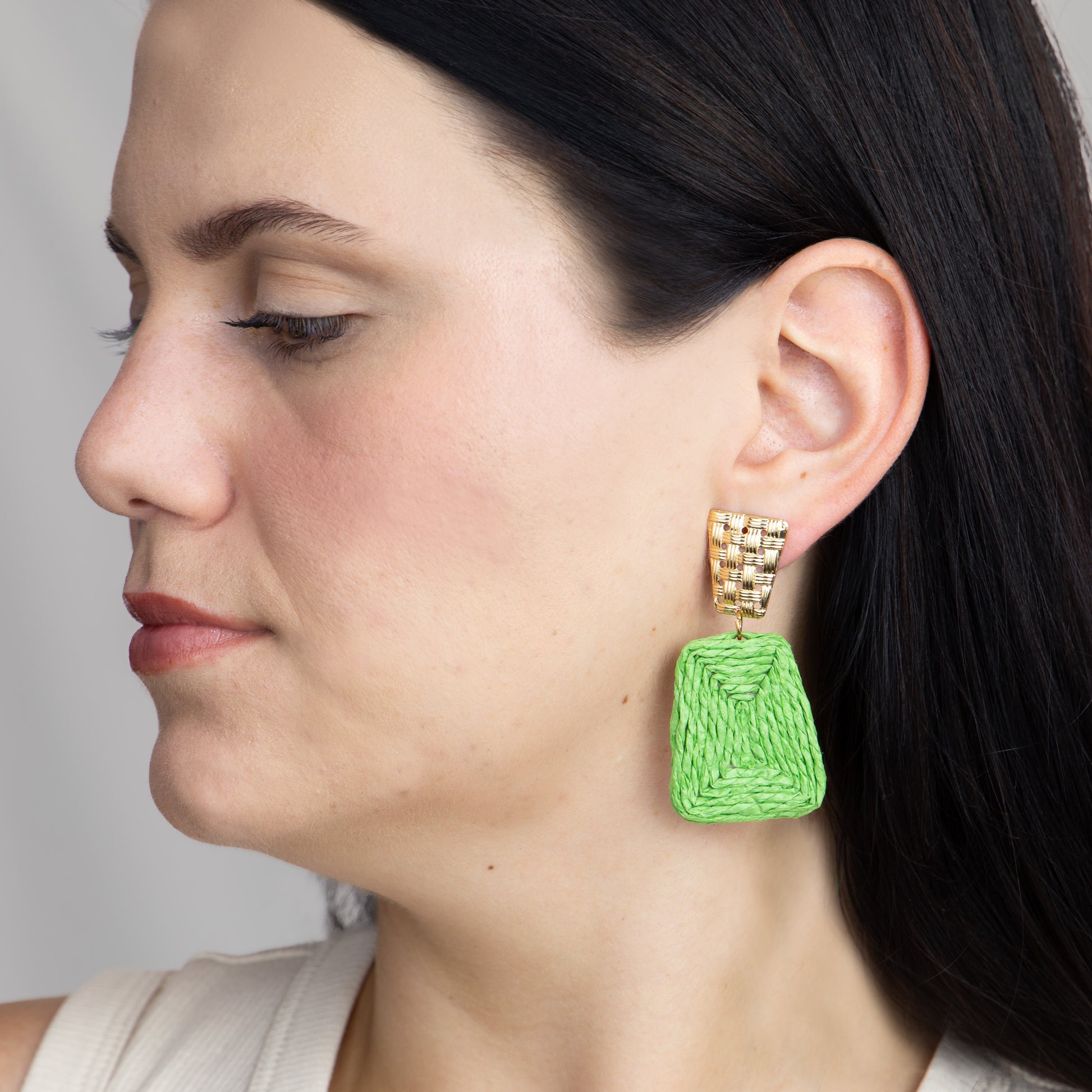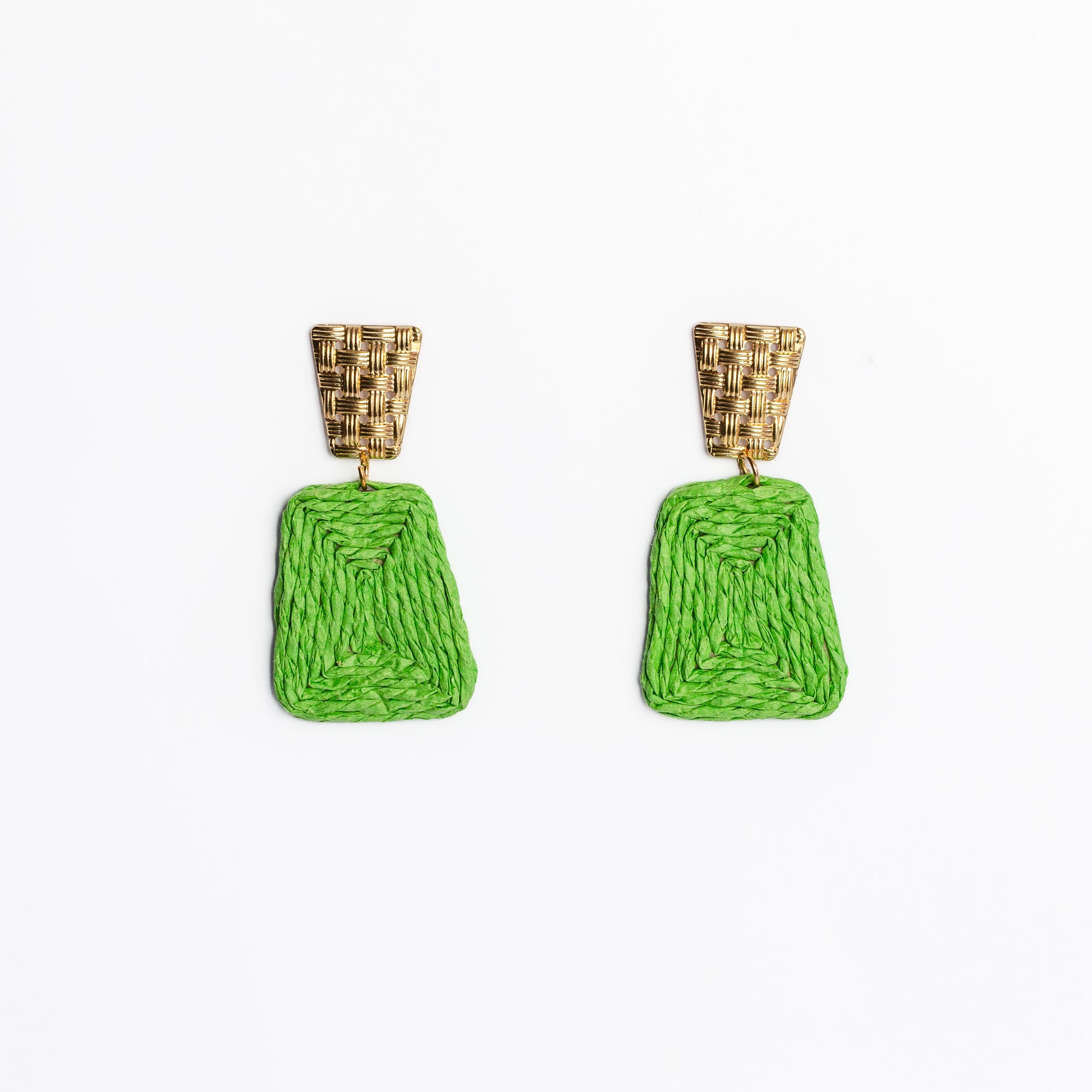 Cercei geometric natural din ratan ușori - Verde