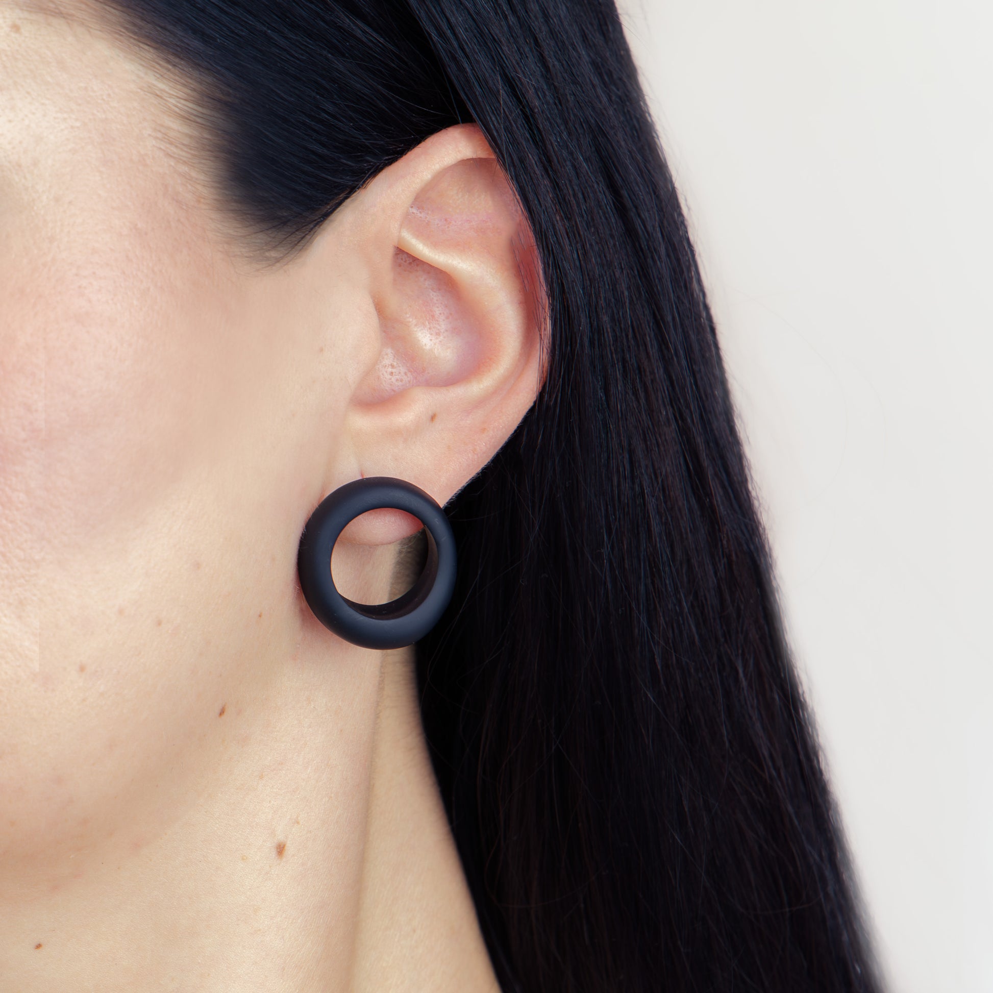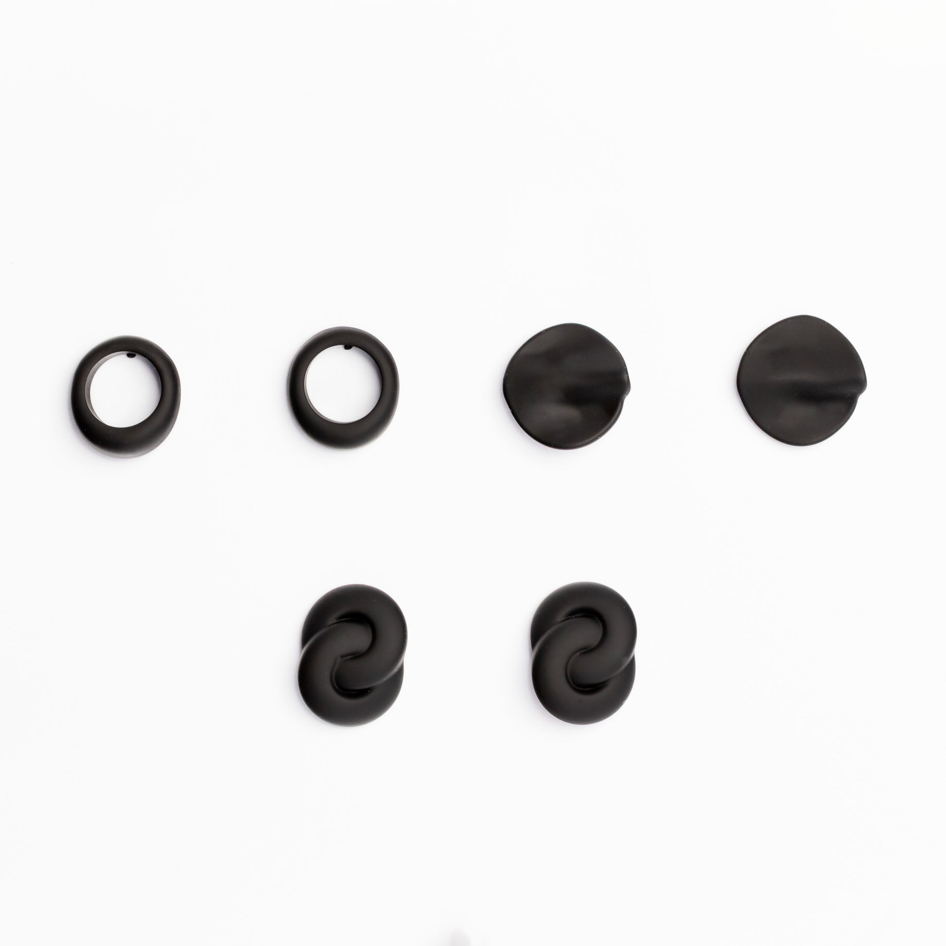 Cercei geometric shapes cu textruă siliconată, set 3 - Negru